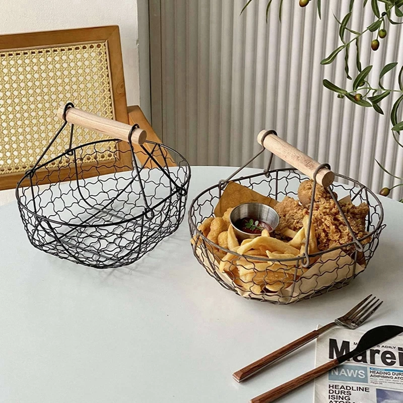 【Materiales duraderos】 La canasta está hecha de metal y con mango de madera, que es duradero y se puede reutilizar muchas veces.