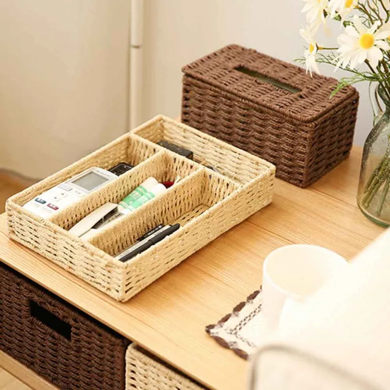 3. Se adapta a su escritorio de oficina, dormitorio, sala de estar, armario, mesita de noche, estante o cualquier otro lugar de la casa. Mantenga su lugar organizado: Use estas cestas para organizar sus artículos pequeños, reduzca el desorden, mantenga todo fácil de encontrar, mantenga sus áreas desordenadas con un aspecto agradable y ordenado, Y añade una elegancia natural y sensación cálida a tu hogar.