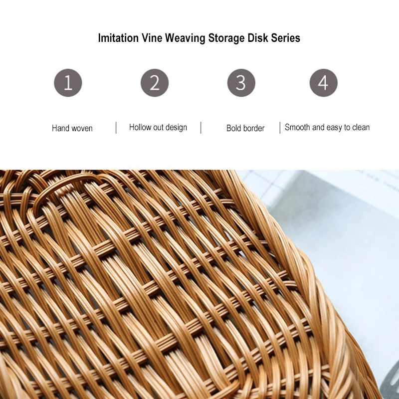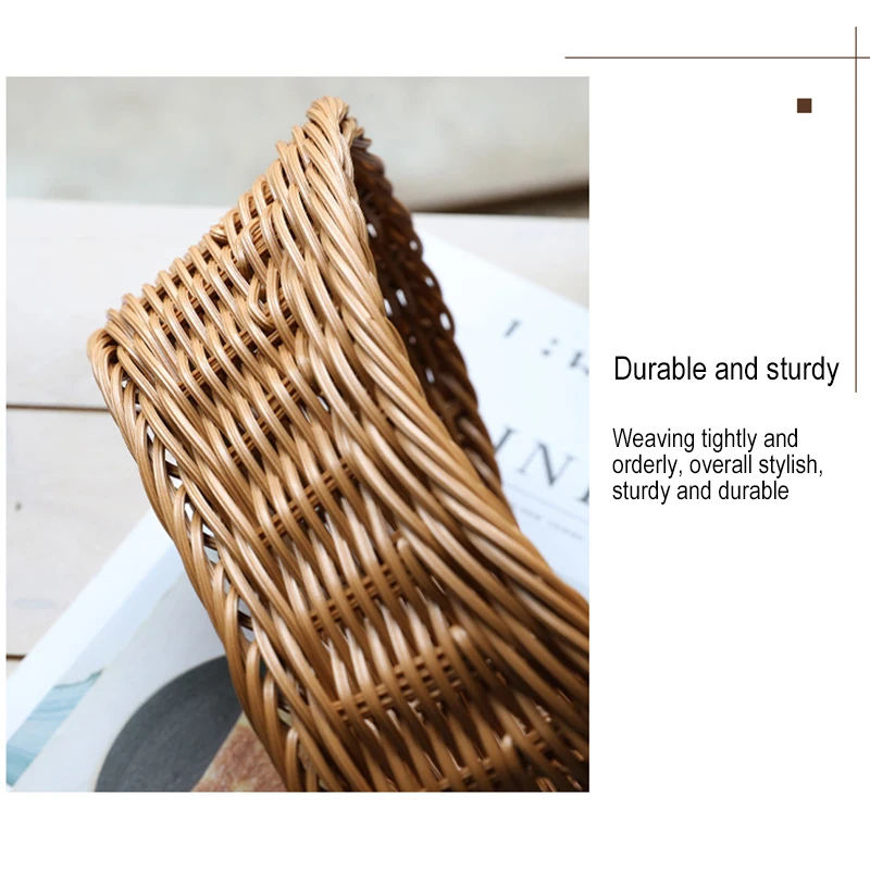 1.Fuerte y duradero, forma de tejido de imitación de ratán, cuidadosamente tejido, lleno de textura, almacenamiento de múltiples especificaciones, para crear un hogar ordenado, cerca del pastoral natural.