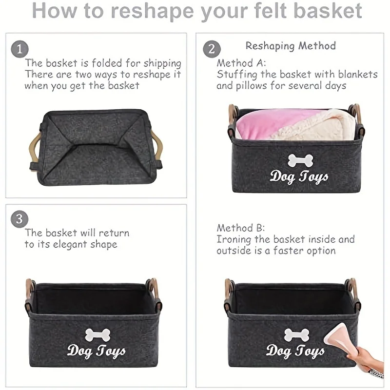 Cesta de almacenamiento perfecta para mascotas, organizador de pecho, caja de juguetes de fieltro para perros, caja de juguetes, para organizar mascotas