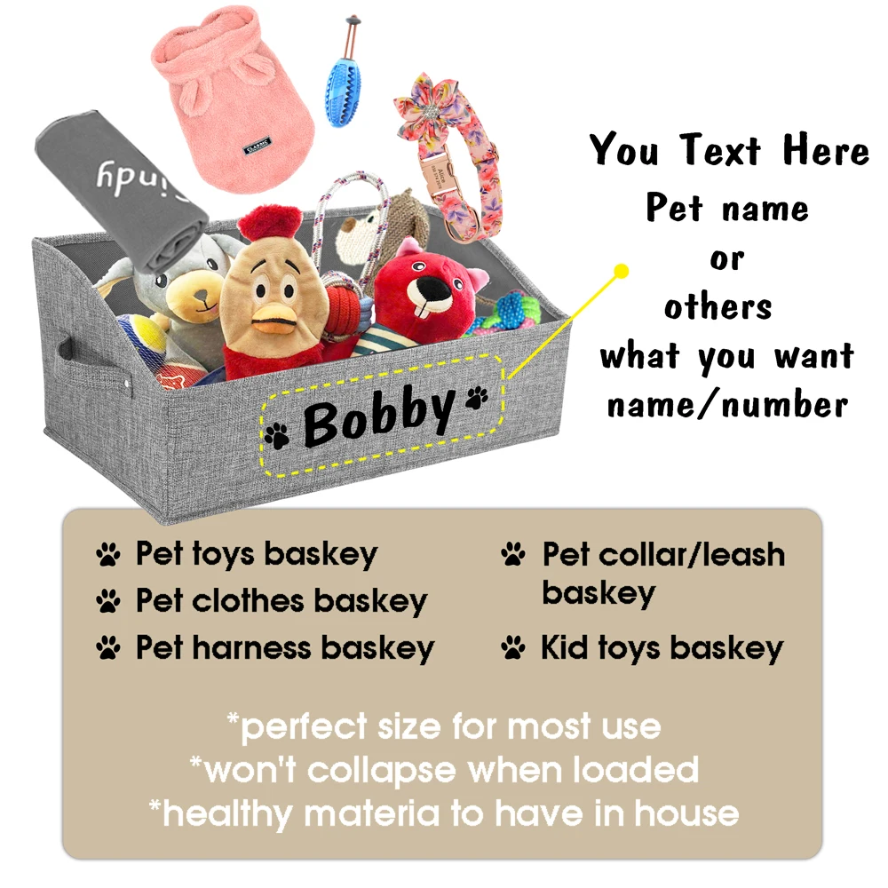 Cesta de almacenamiento personalizada para perros, nido de gato, caja de almacenamiento plegable para mascotas, impresión gratuita de nombre, cestas para perros, ropa de juguete para perros, zapatosColor: gris, beige, negro