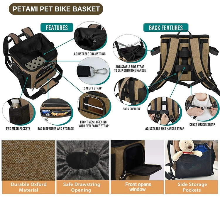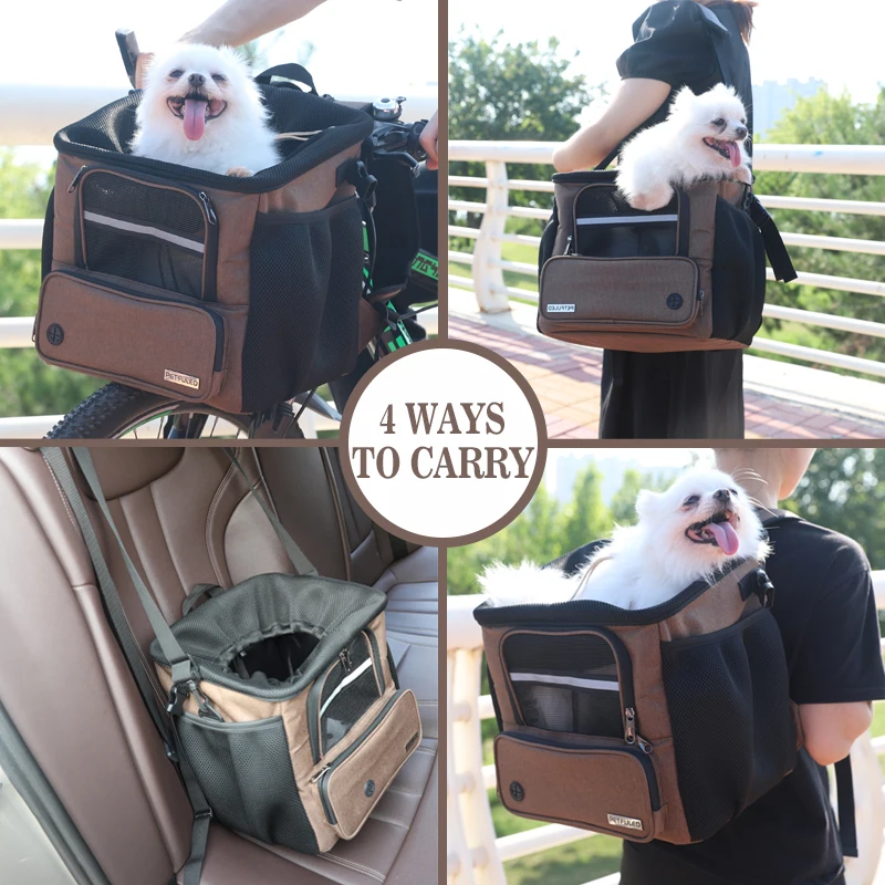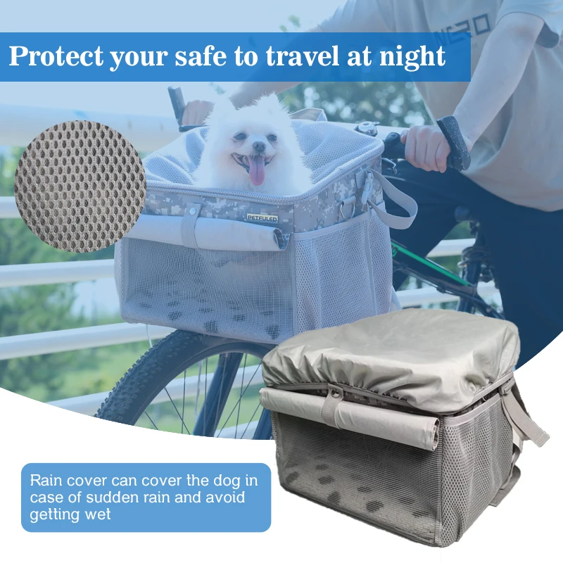 Cesta para bicicleta para perros, cesta para perros para mascotas pequeñas y medianas con malla transpirable, cesta para bicicleta extraíble, cesta para bicicleta con manillar delantero