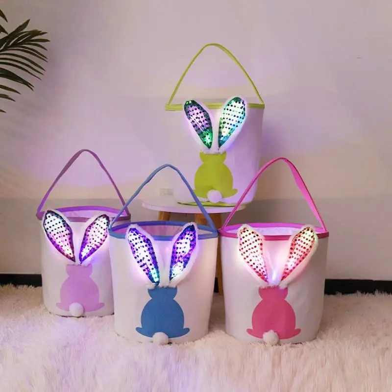 1.Selected Material: Bring in the spring festivities with a bang. Our High-quality material LED Easter Bunny Basket for Kids is a addition to any Easter party, egg hunts, or other celebrations. The lightweight and durable cotton canvas and vibrant LED lights make this basket perfect for kids and teenagers alike.