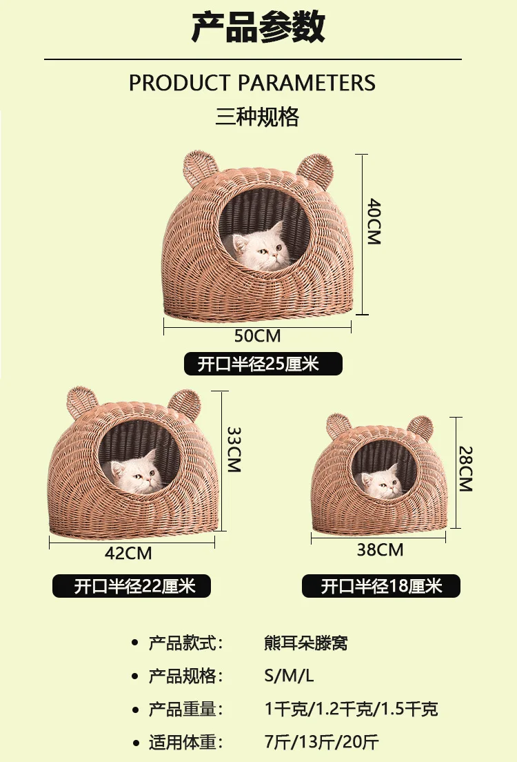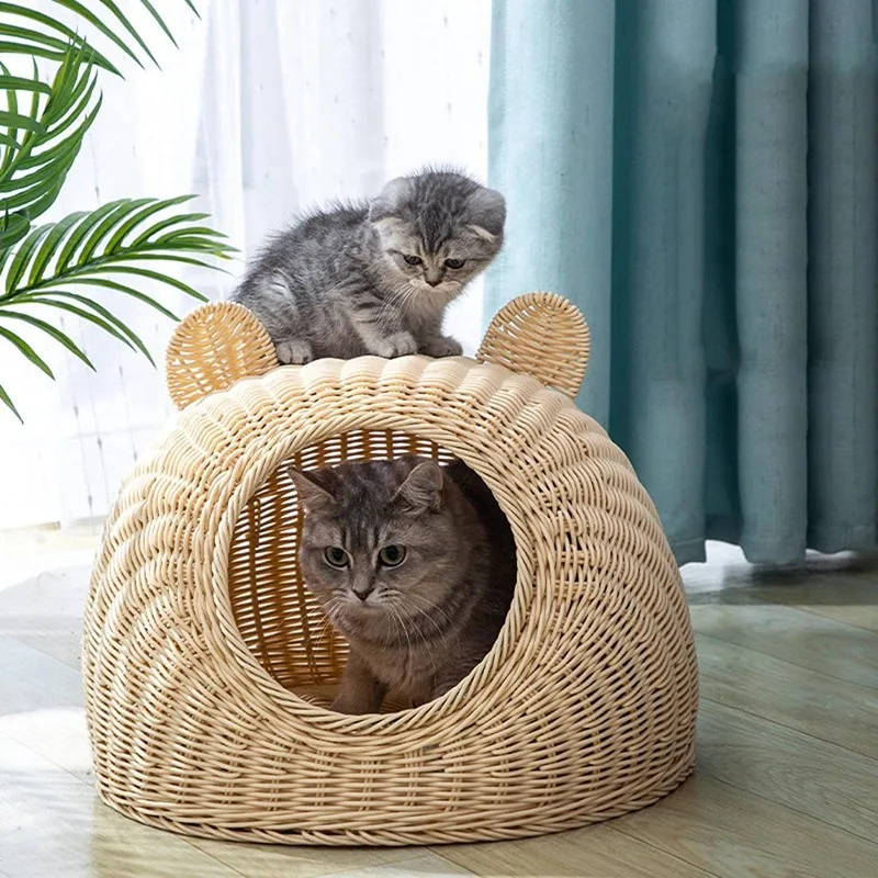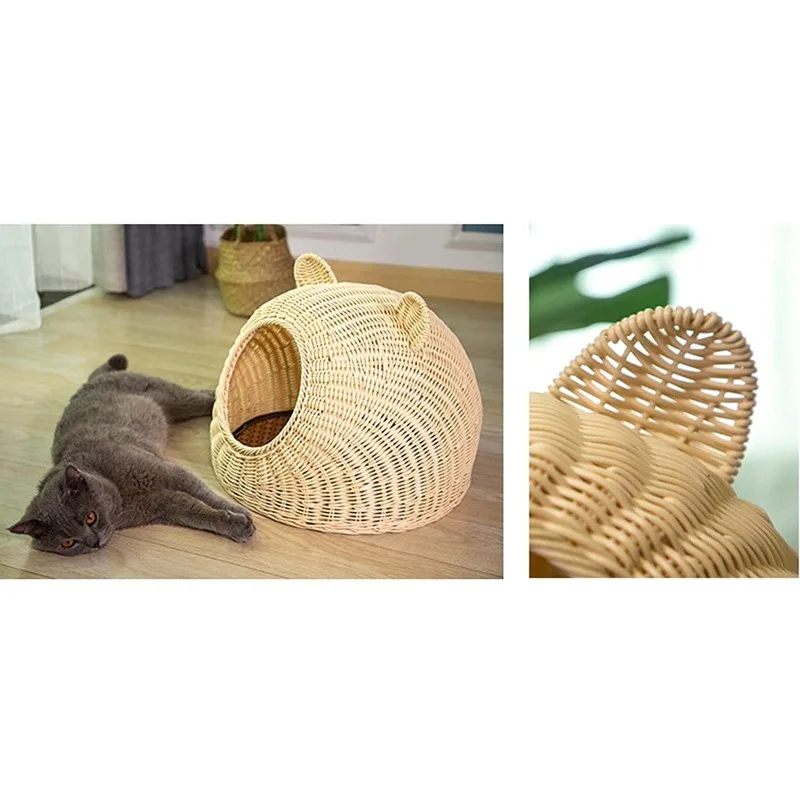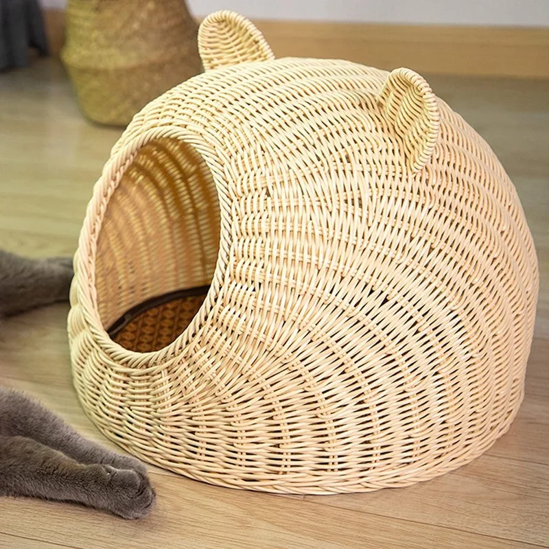 Cesta de mimbre para invierno, casa para gatos interior, nido para mascotas frío semicerrado, cama para cachorros, nido para perros, modelado encantador, cómodo y lavable