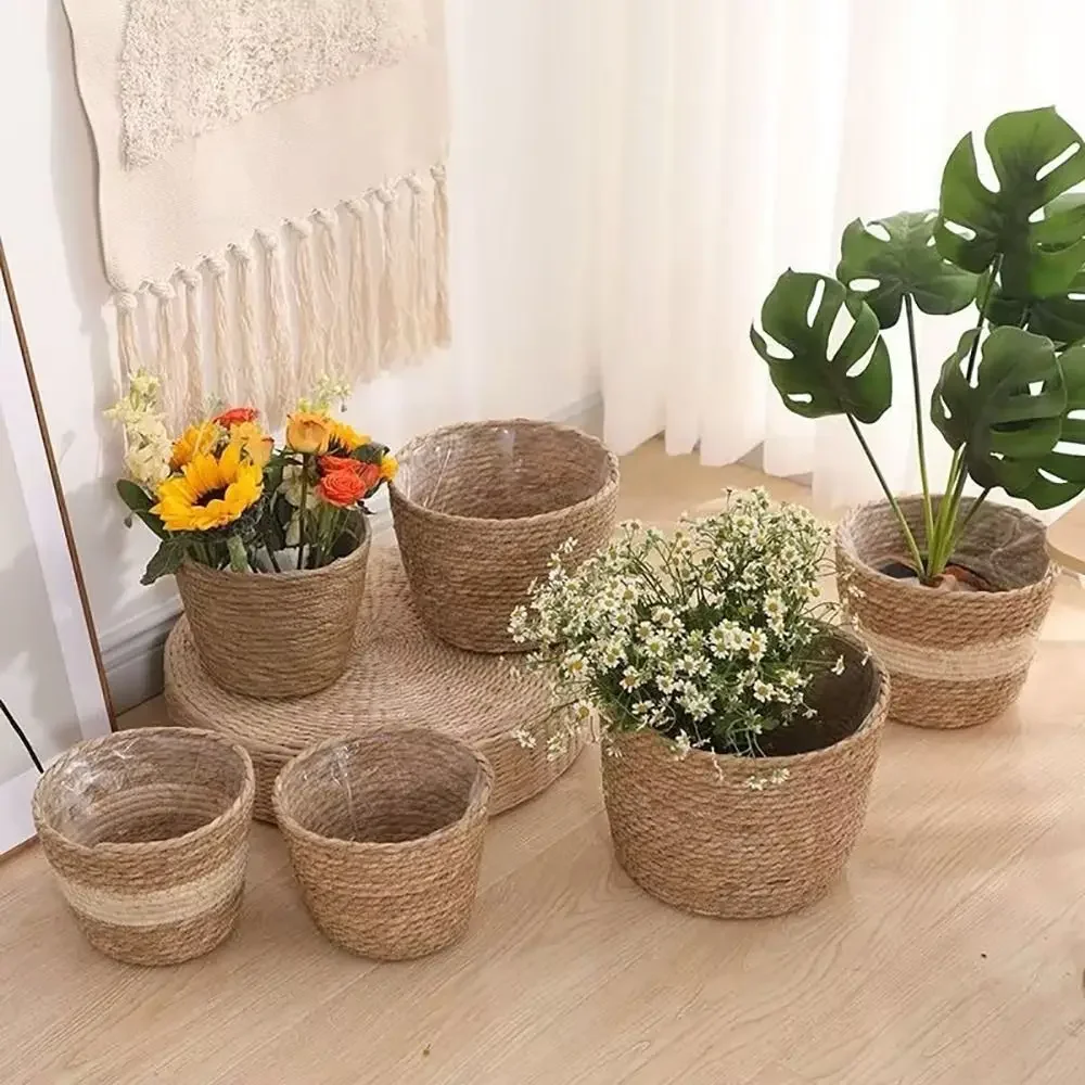 1. Esta canasta para macetas está tejida a mano con materiales de césped natural, útil y liviana, segura de usar y preserva la apariencia natural del césped.