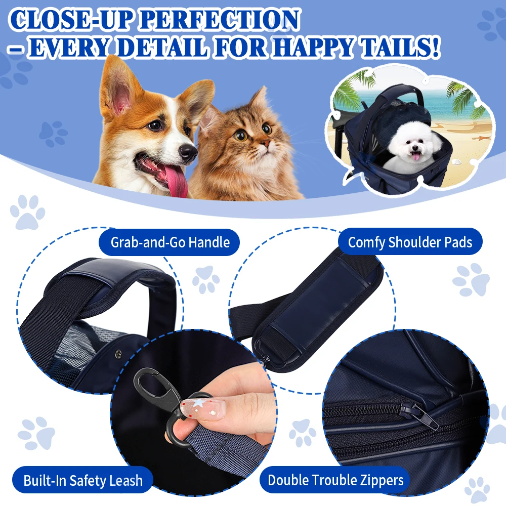 Bolsa transportadora para perros, mochila lateral suave, transportadores para cachorros y mascotas y productos de viaje, aprobados por aerolínea, accesorios para perros pequeños y gatos