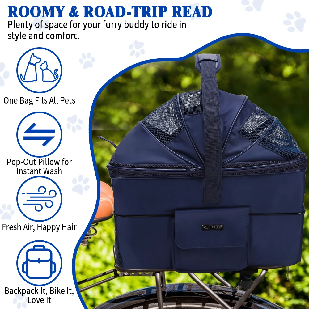 Cesta trasera acolchada cómoda para bicicleta, cesta para asiento de viajero para mascotas, fácil de instalar