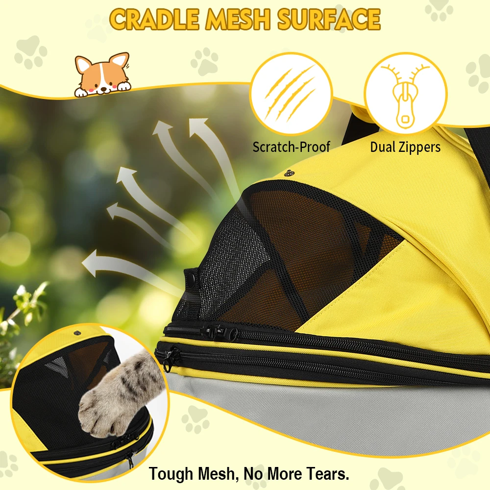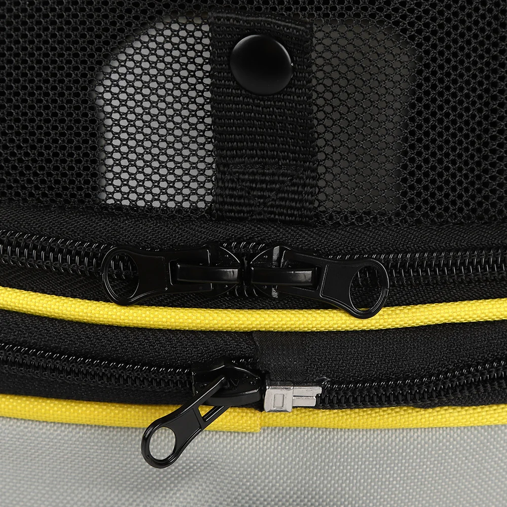 Interior y confort: podrás vigilar e interactuar con tu mascota mientras disfrutas del paisaje exterior.Los otros lados están diseñados con material de malla transpirable para garantizar una buena circulación del aire en la bolsa y mejorar la comodidad de su mascota.