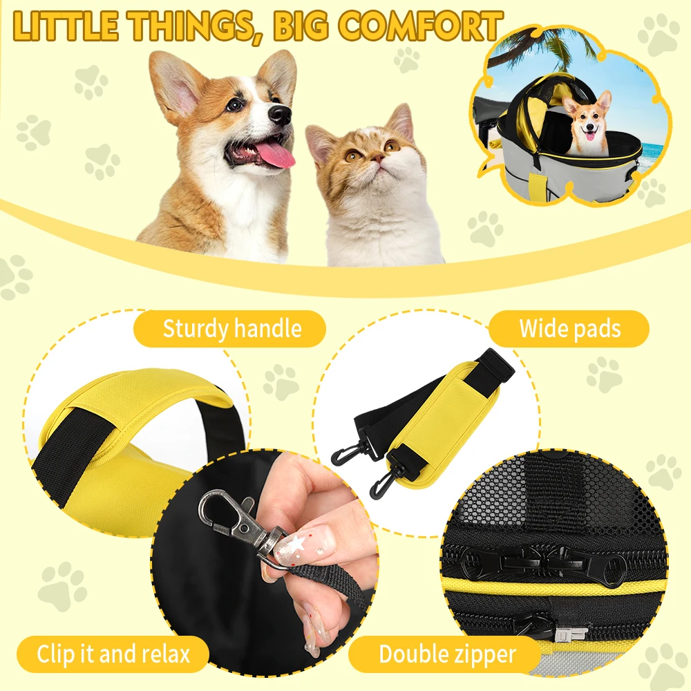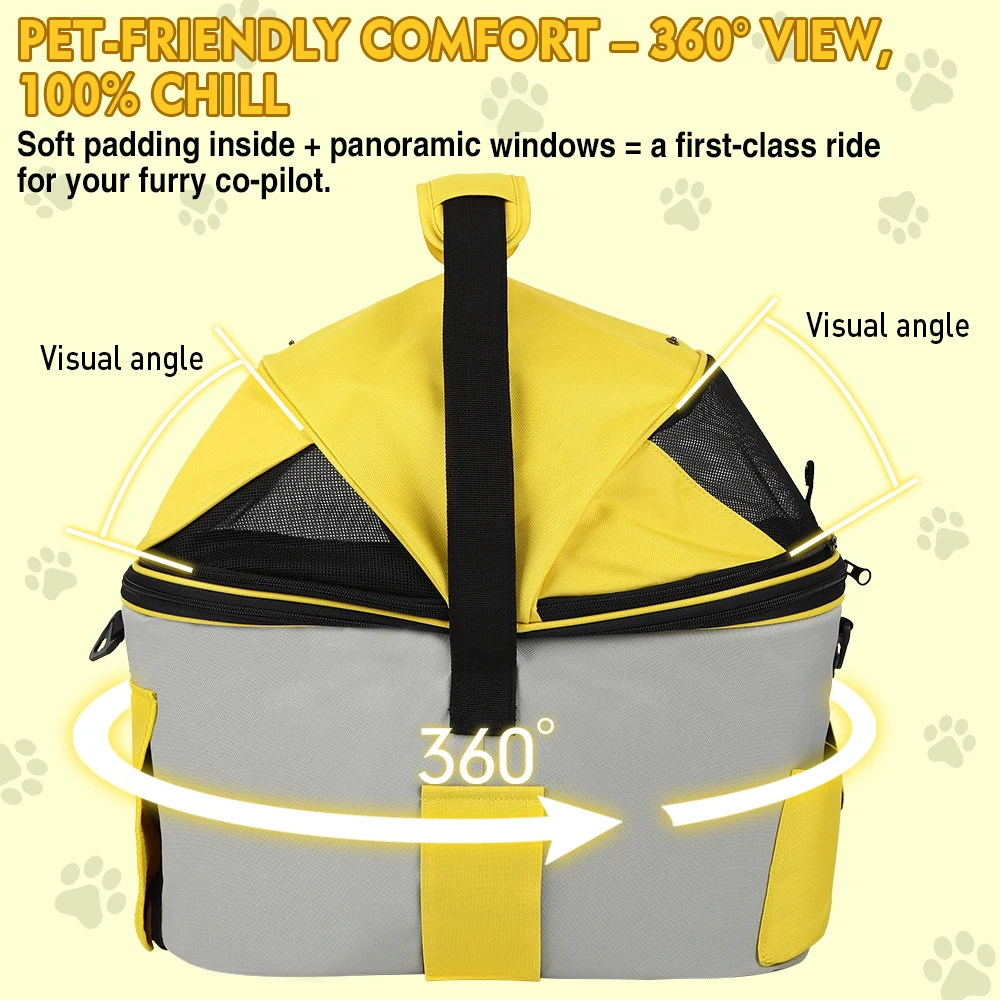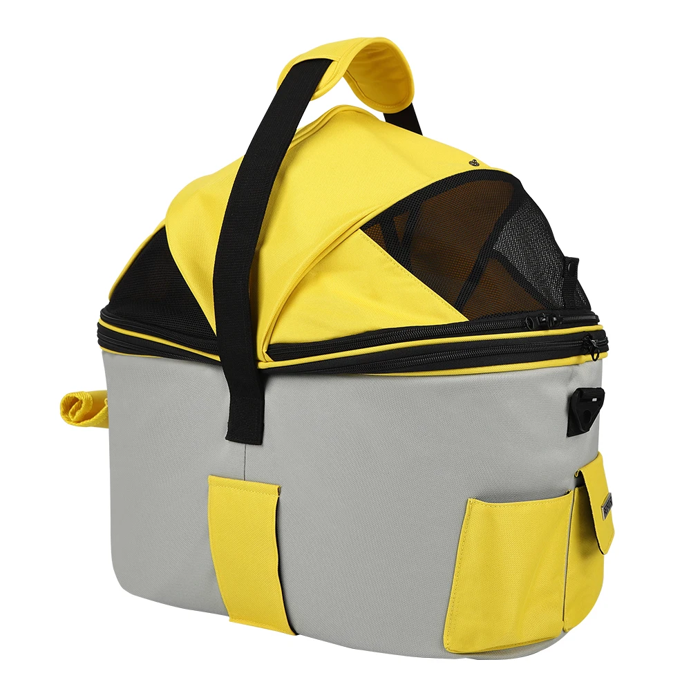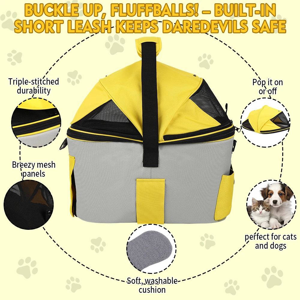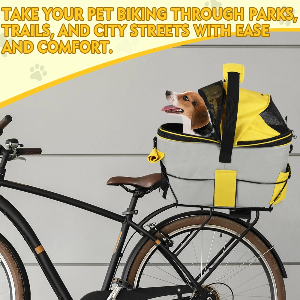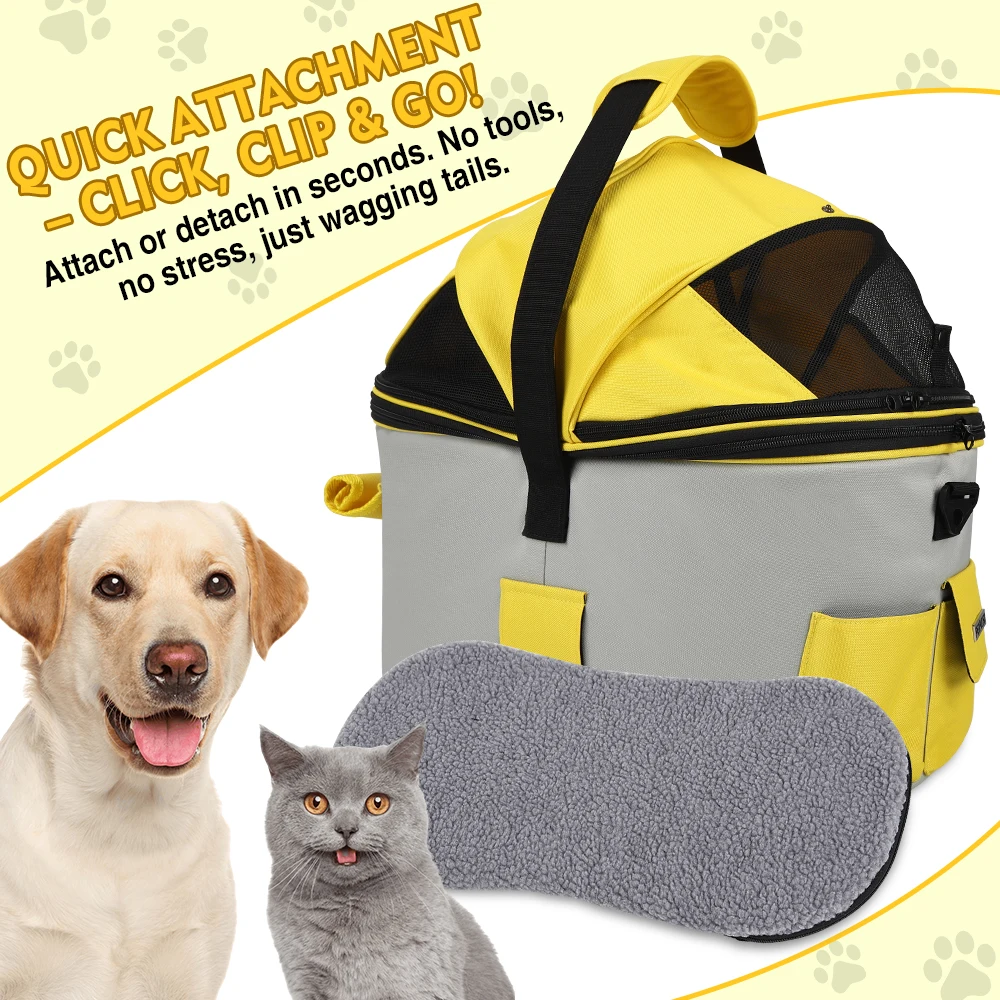 Entrenamiento versátil al aire libre: esta bolsa de transporte se puede instalar en el asiento trasero de una bicicleta para viajes de mascotas.También se puede utilizar como bolso de mano para viajes, visitas veterinarias o comestibles.Además, sirve como funda para asiento de coche para proteger a tu mascota y al asiento del pasajero de tu vehículo.haciéndolo adecuado para viajes en cualquier clima.