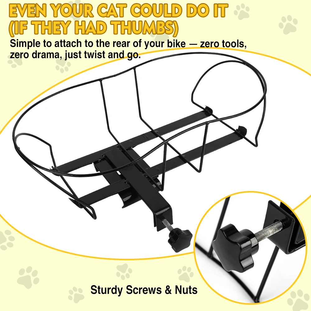 Estabilidad versátil: esta cesta para bicicleta permanece estable en el asiento trasero.El clip de cuerda de seguridad integrado en la bolsa de transporte le permite atarlo al collar de su mascota para evitar que salte mientras conduce, garantizando su seguridad.