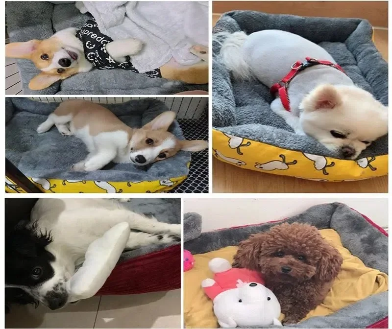 Cestas de talla grande para perros, cachorros y gatos, casa cálida, nido cuadrado de color caramelo, cama para perros, perrera para perros pequeños y medianos