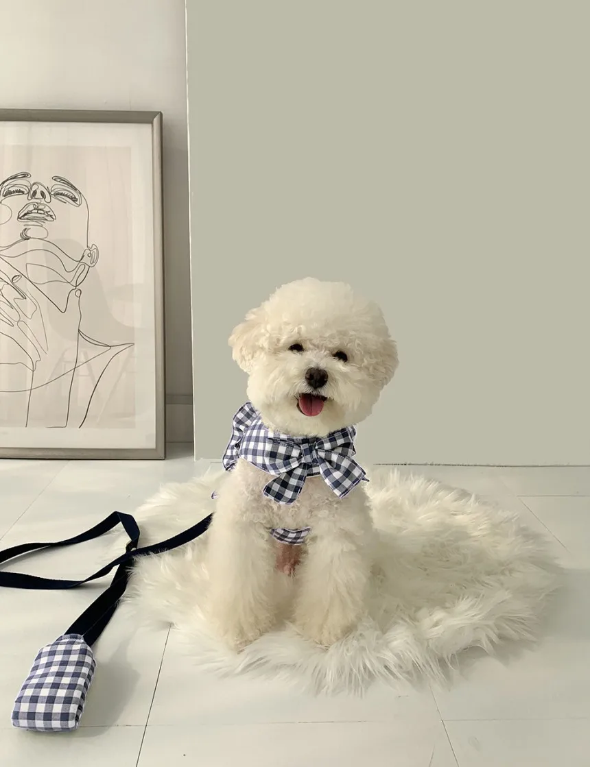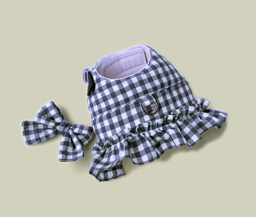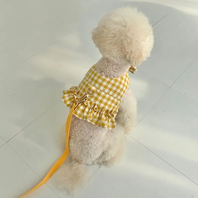 Chaleco a cuadros para perro y gato, traje de remolque con lazo a cuadros, oso de peluche, falda para exteriores, correa para el pecho, arnés de cadena para perro