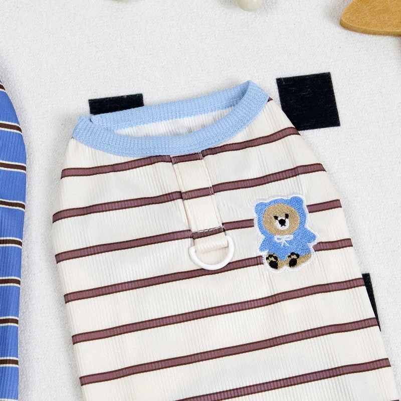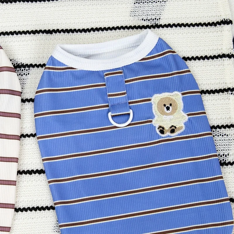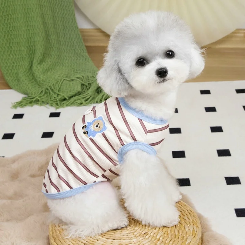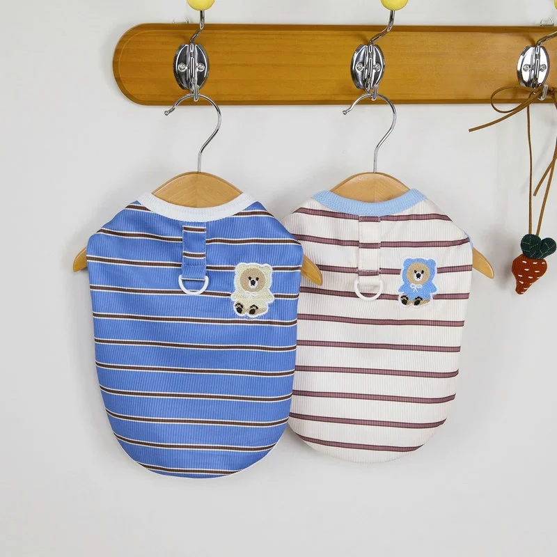 Chaleco de verano a rayas para perros, ropa fina transpirable para perros, chaleco con estampado de oso para cachorros, camisa sin mangas para gatos a la moda, jerseys para mascotas, ropa para perros