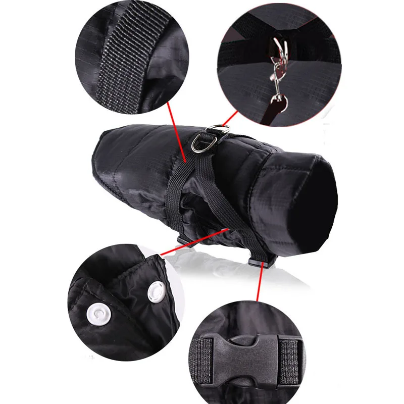 Chaleco acolchado impermeable para perros, ropa roja y negra para perros, abrigo cálido, arnés, chaqueta de invierno para cachorros y gatos, ropa para mascotas, disfraz para perros XS-XXL