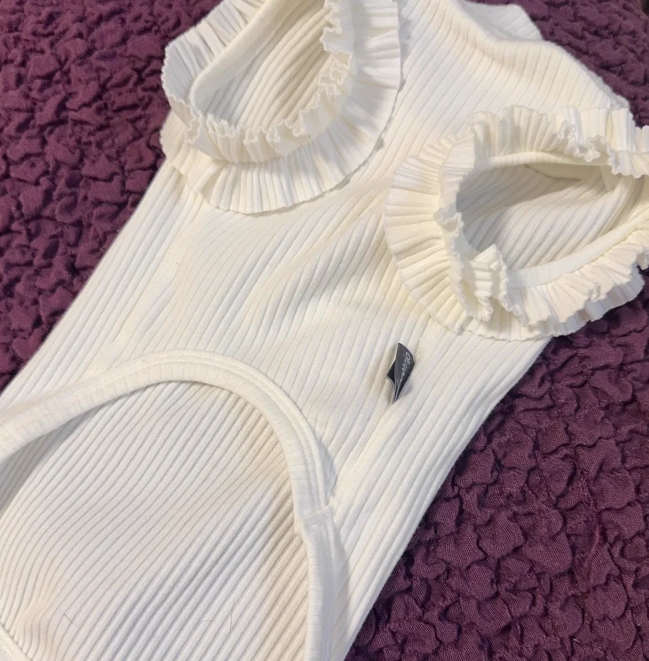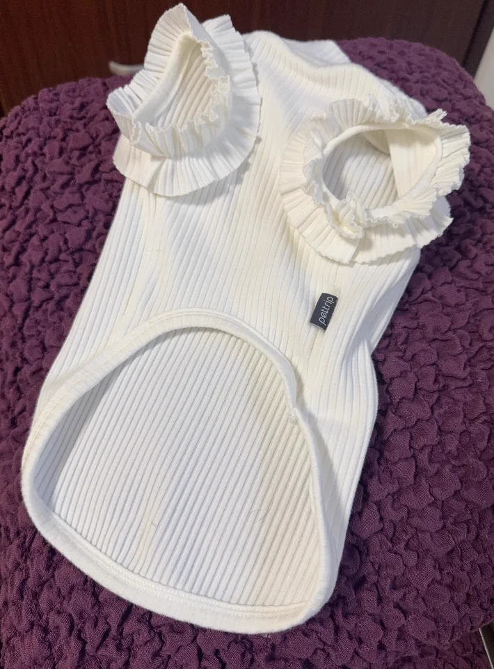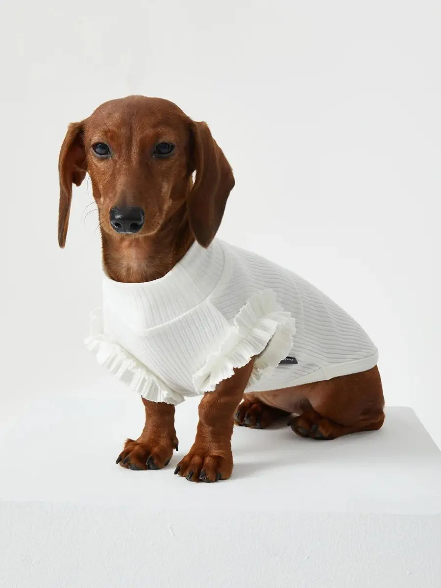 Chaleco de algodón blanco con mangas voladoras para perro Wiener en primavera y verano Vestido dulce gris para perros tejados Pijamas suaves para perro Dachshund