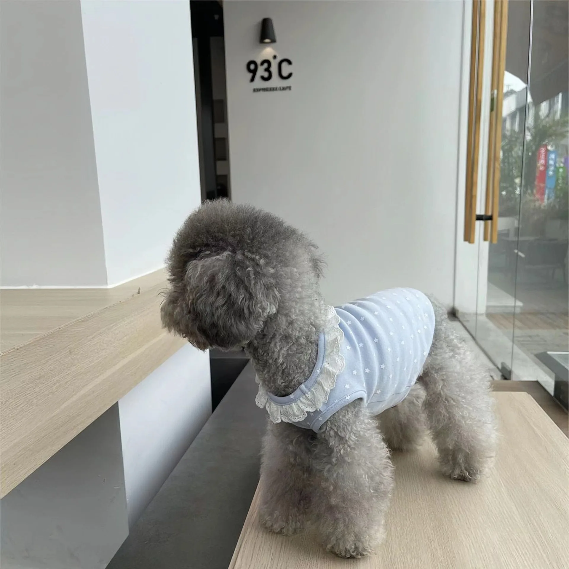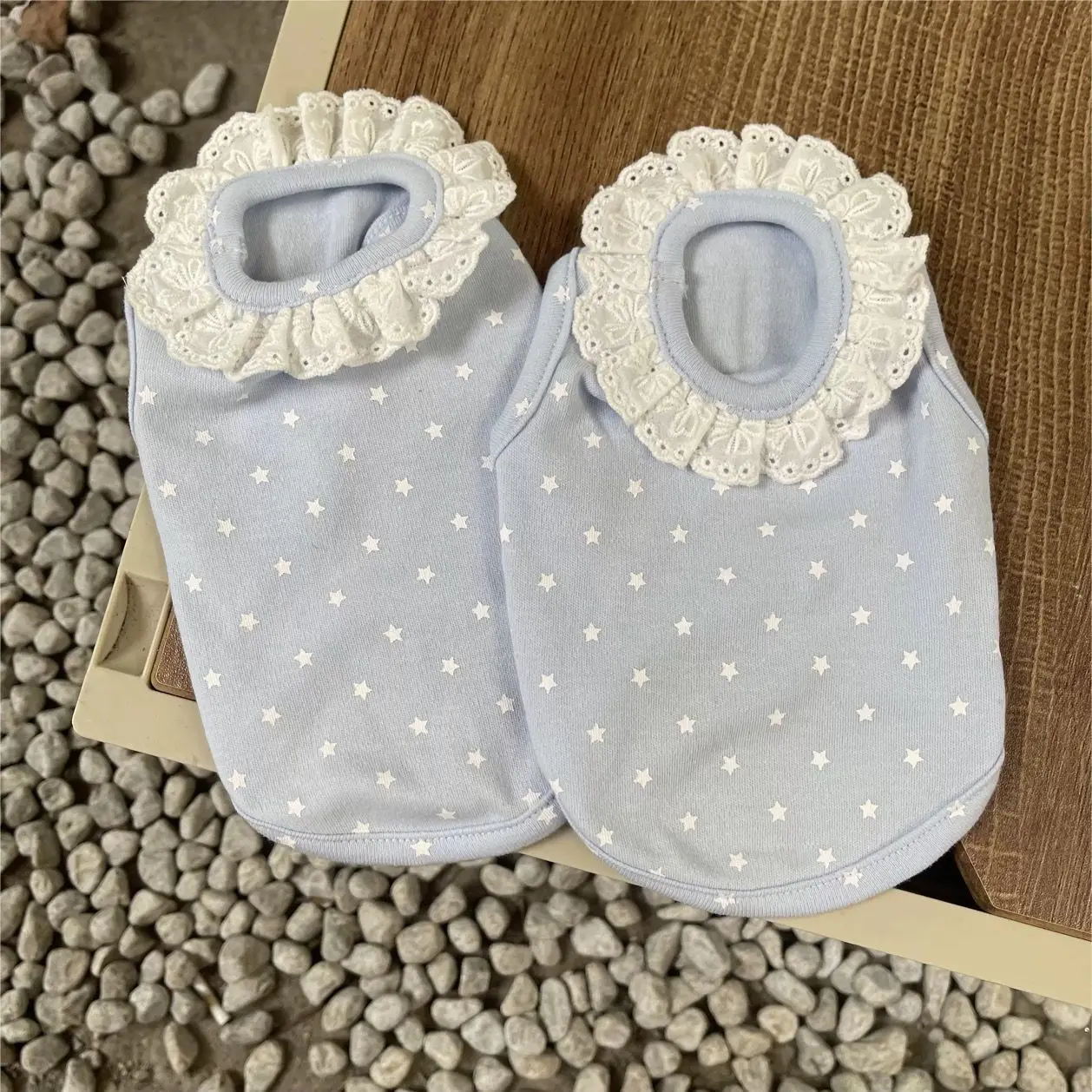 Chaleco de algodón puro para mascotas, chaleco de encaje de lunares, ropa bonita para mascotas, ropa para perros y gatos, oso de peluche, chaleco para perros Yorkshire de primavera