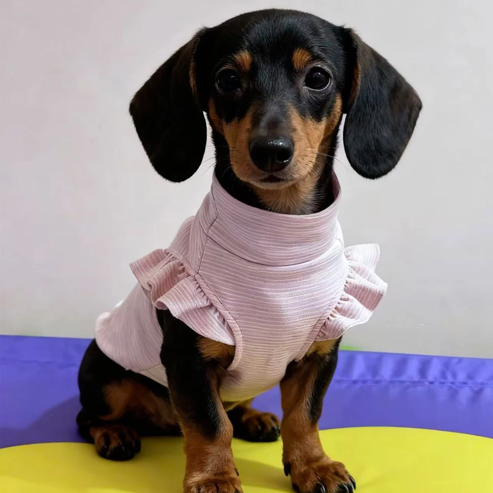 Chaleco de algodón con tiras de mangas voladoras para perros pequeños Wiener, vestido dulce de primavera y otoño para perros de tejón, pijamas pequeños y suaves de Dachshund