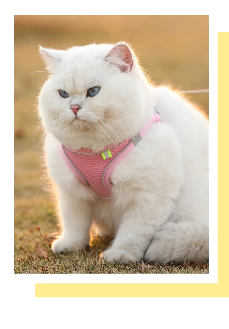 2. Conjunto de arnés de chaleco de gato de malla suave y correa de nailon para caminar a prueba de escapes, diseño sin tirones ni estrangulamiento. El arnés hará que su gatito sea seguro y cómodo.Lo mejor es caminar, correr, jugar o hacer senderismo.Este juego de correas de arnés de seguridad le permite pasear a su mascota.