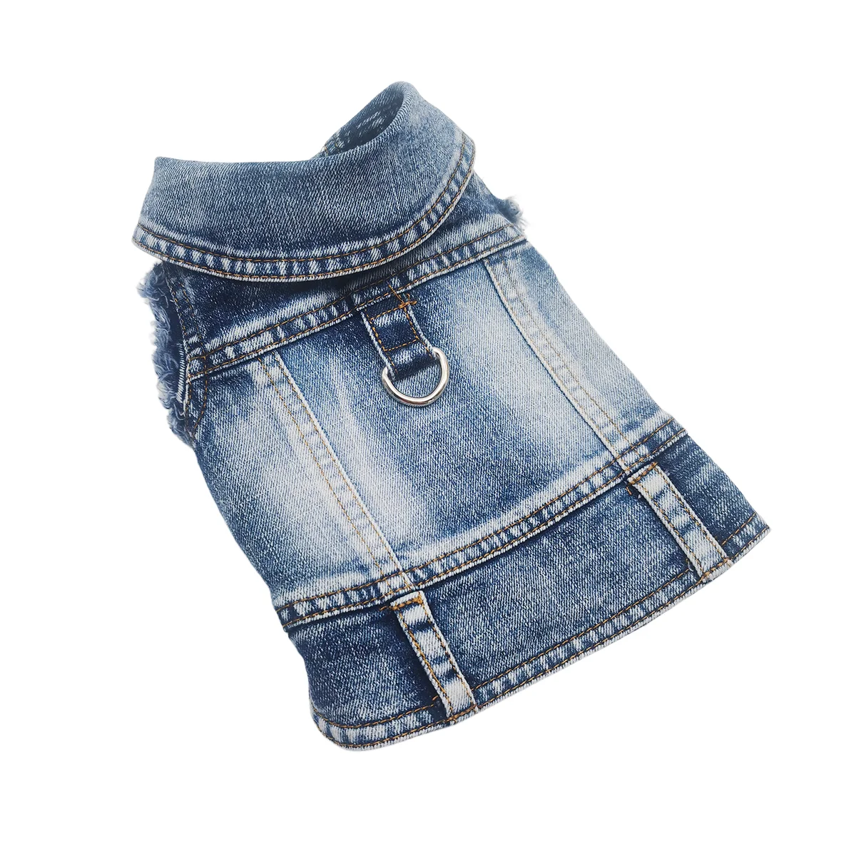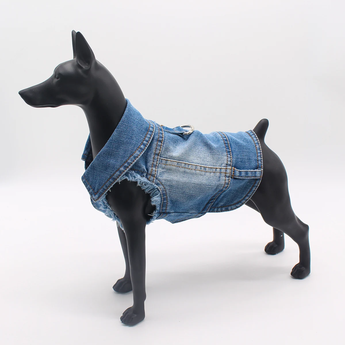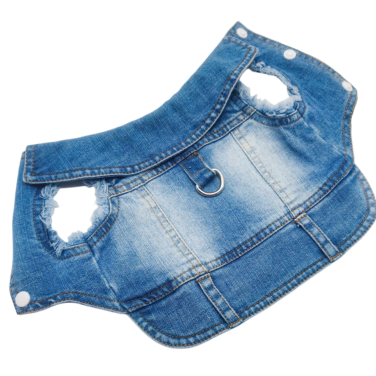 Chaleco con arnés de mezclilla para perros pequeños, ropa para cachorros, chaqueta vaquera, disfraz de Yorkie, caniche, Chihuahua, traje de gato, primavera, XS-XXL