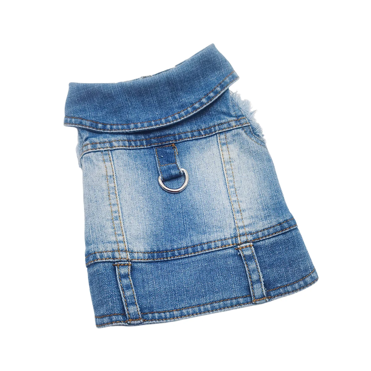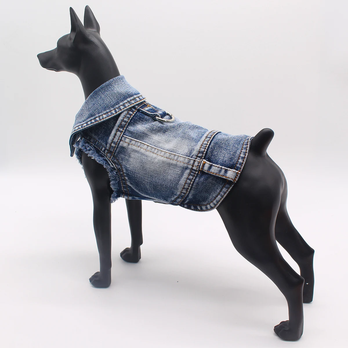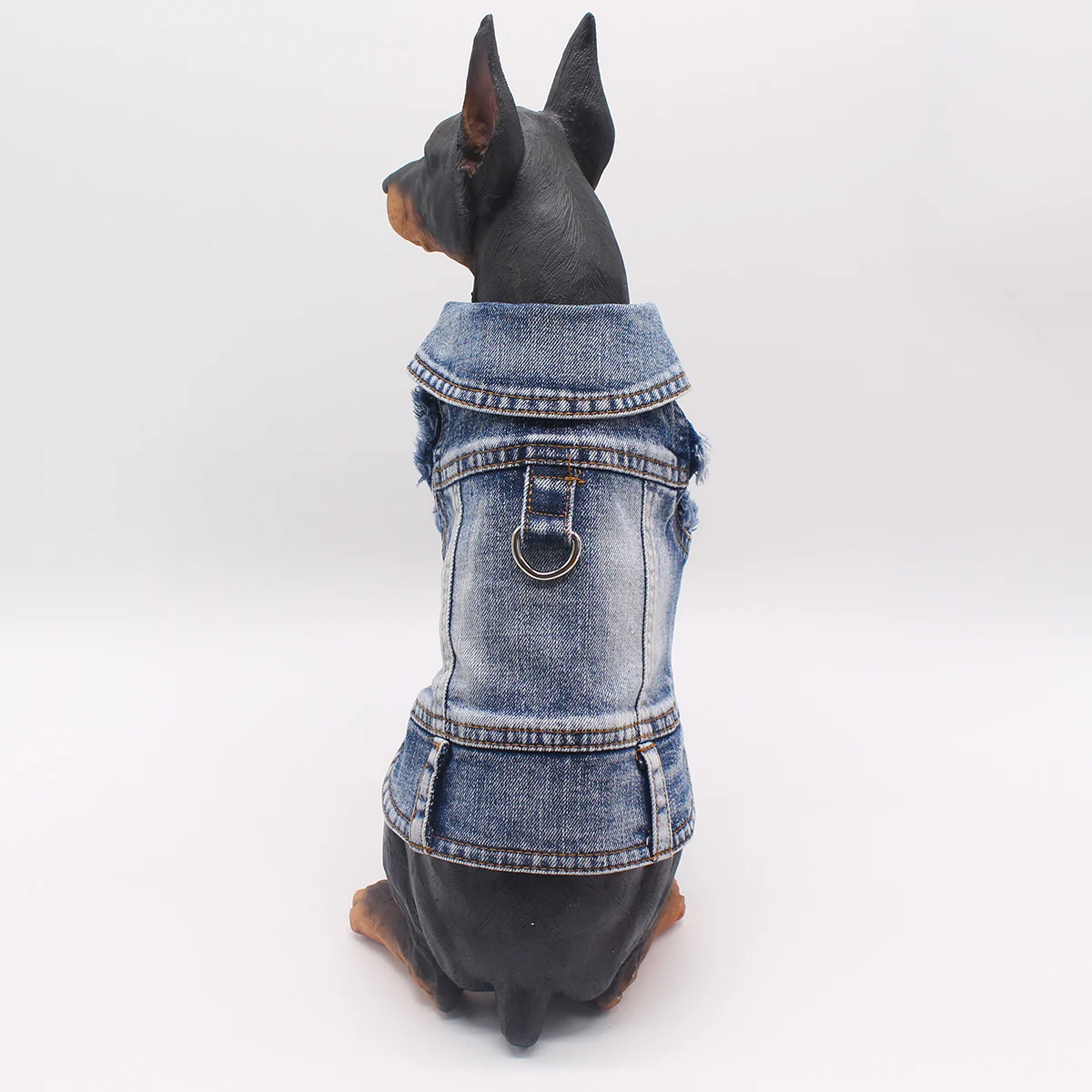 Chaleco con arnés de mezclilla para perros pequeños, ropa para cachorros, chaqueta vaquera, disfraz de Yorkie, caniche, Chihuahua, traje de gato, primavera, XS-XXL