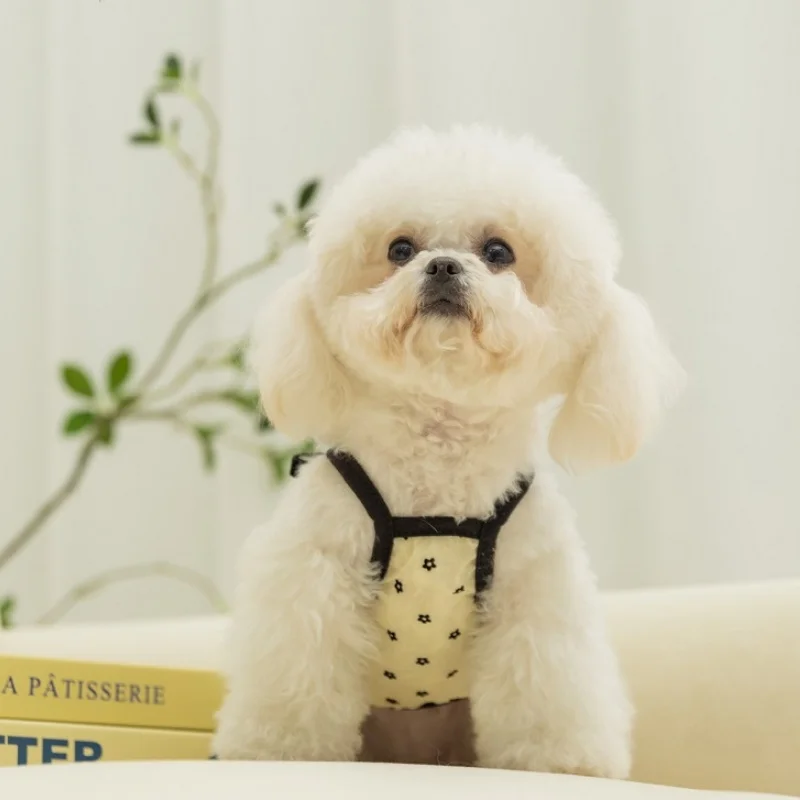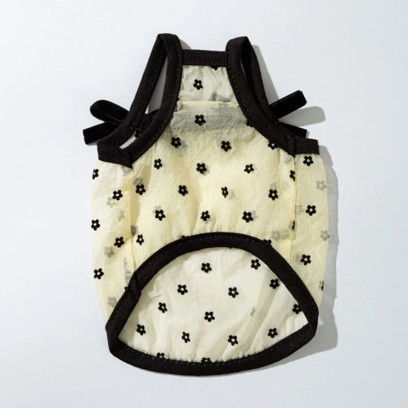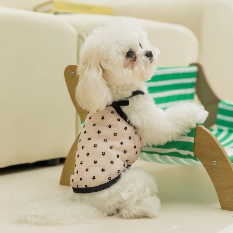 Chaleco bonito con lazo para perros, ropa de verano para mascotas, camiseta con estampado Floral para cachorros, camiseta de moda para gatos, chaleco de malla para mascotas, disfraces para perros con franjas bichon