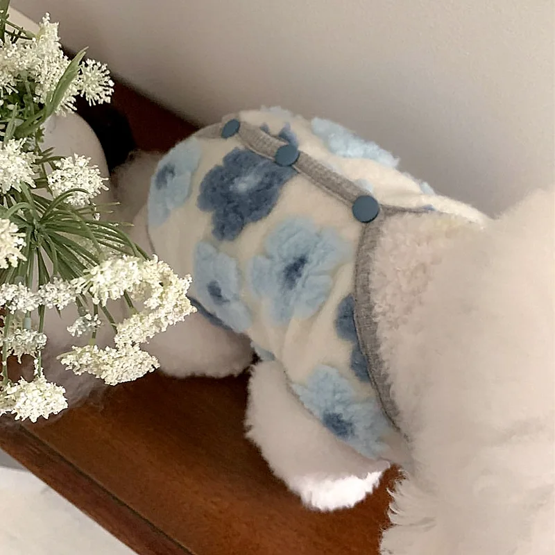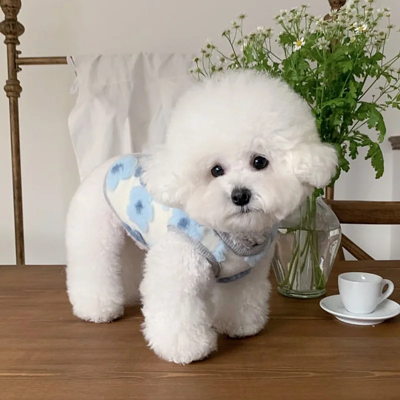 Chaleco con bordado de flores para mascotas, ropa cálida de invierno para perros, bichón, Yorkshire, Schnauzer, abrigo de camisa con botones divididos suaves