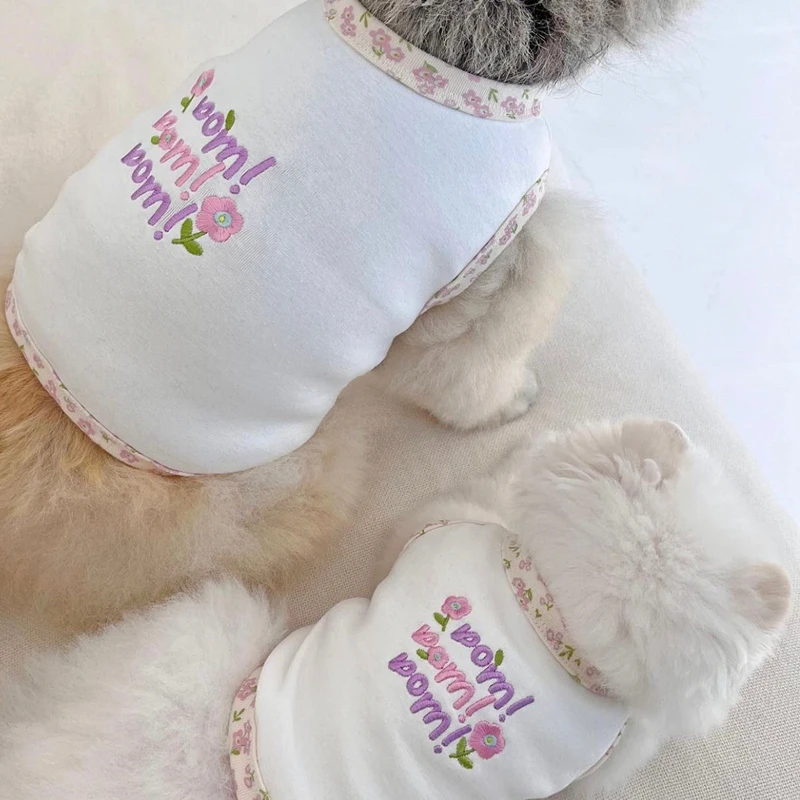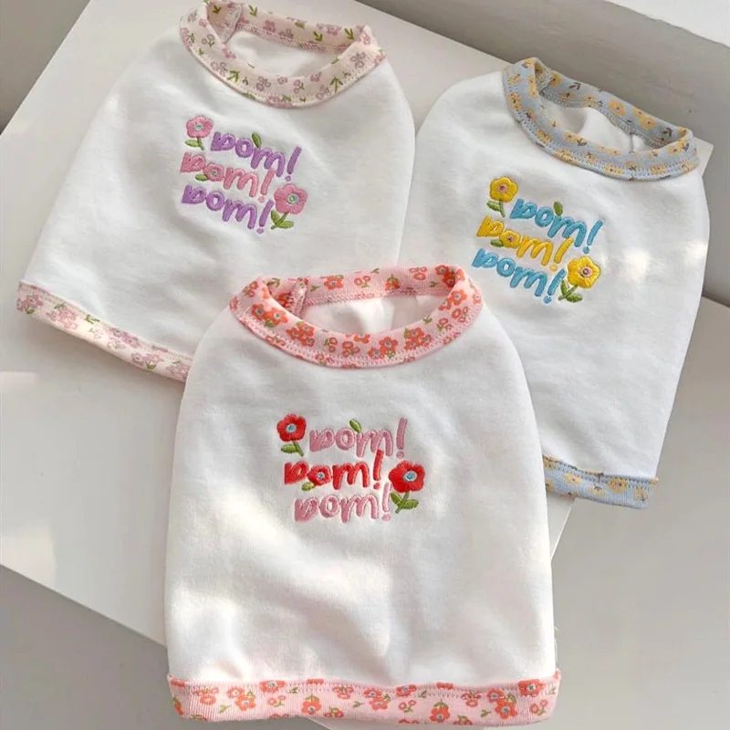 Chaleco bordado para mascotas, oso de peluche, cachorro pequeño, gato, Yorkshire, Top Floral, ropa para cachorros, chaleco refrescante para perros, primavera y verano