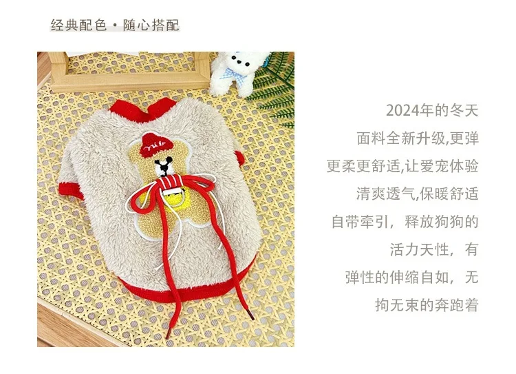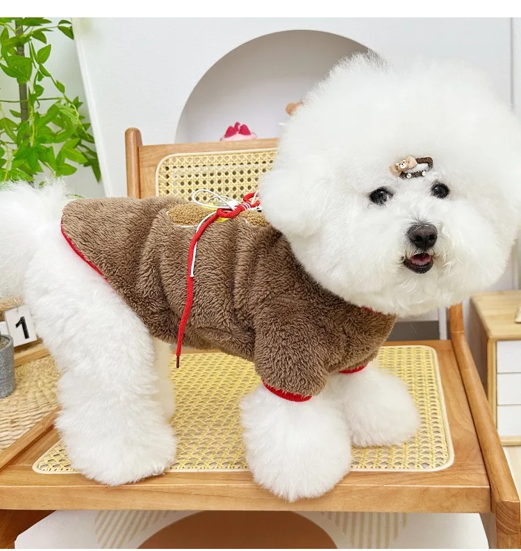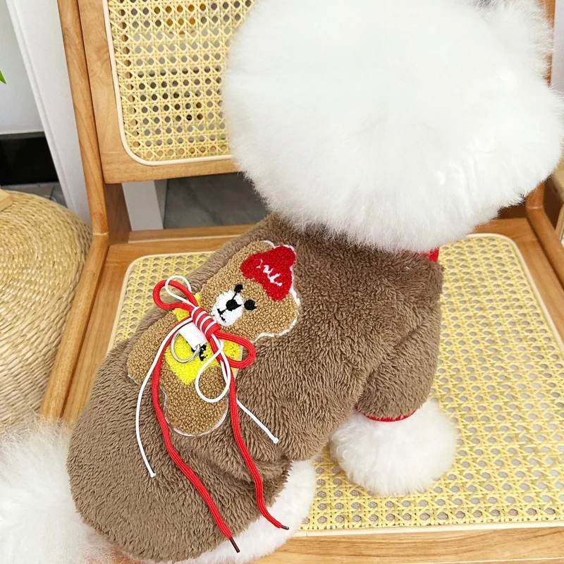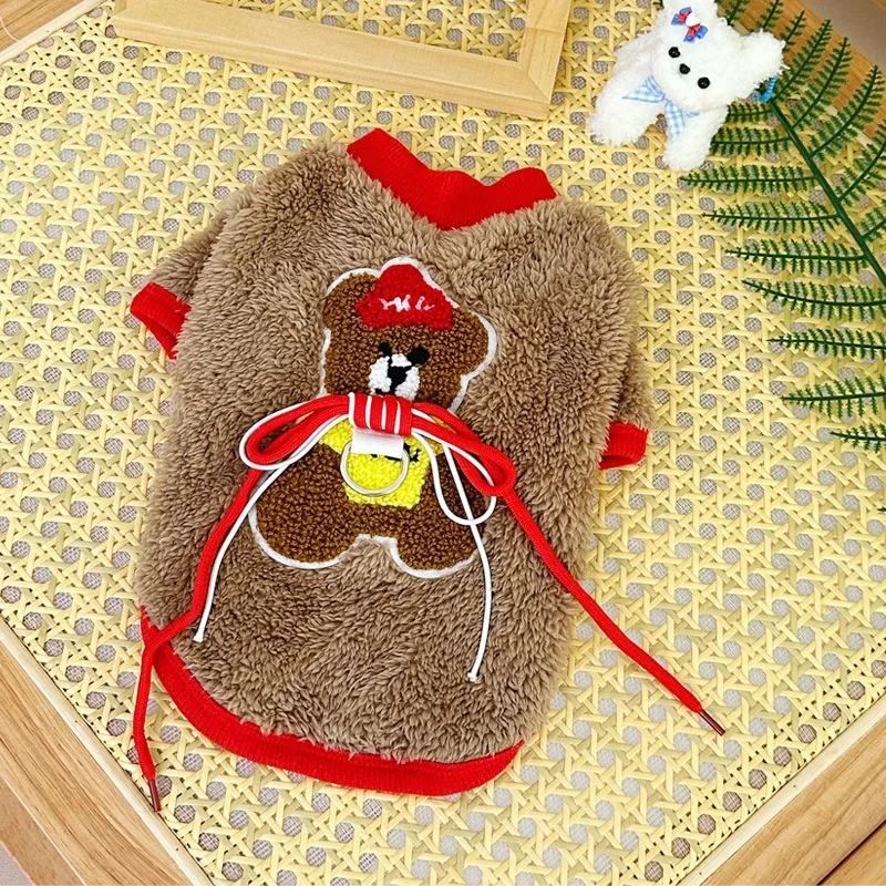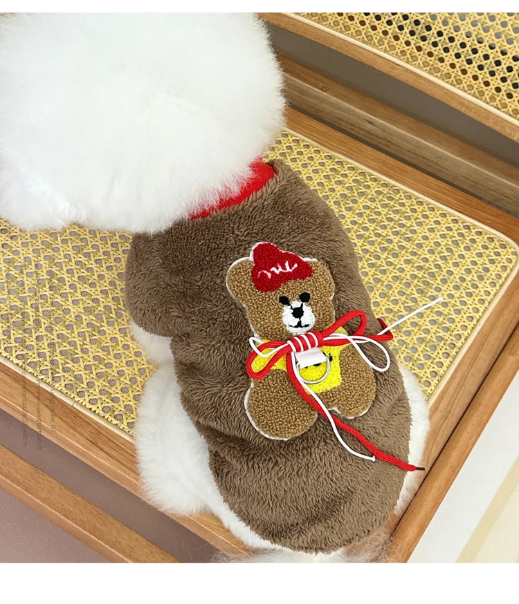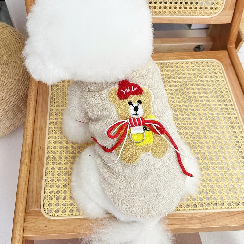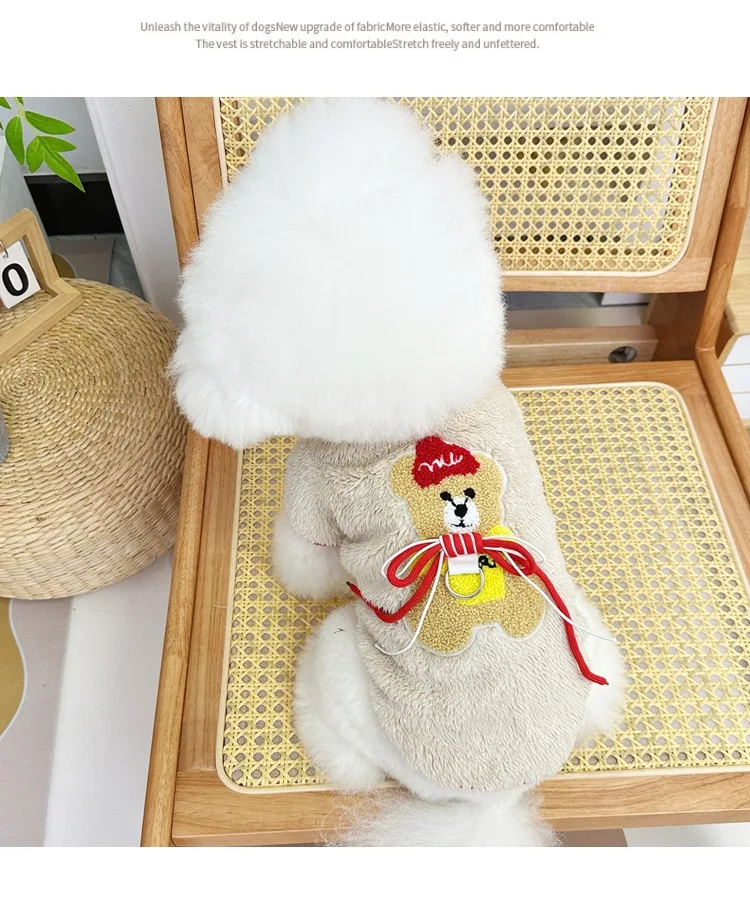 Chaleco bordado de oso para mascotas, ropa cálida para perros y gatos, oso de peluche, ropa para perros pequeños y cachorros, Otoño/Invierno