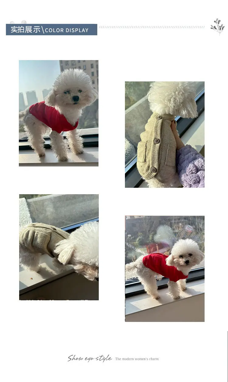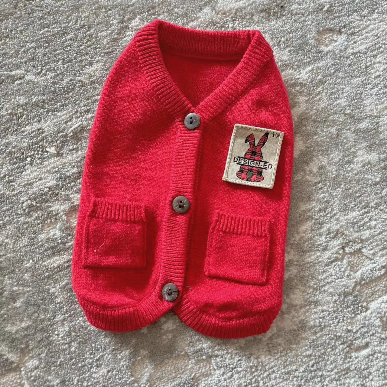 Chaleco de Cachemira tejido para otoño/invierno para mascotas, suéter de otoño/invierno, cárdigan, abrigo rojo de Navidad cálido y cómodo, suéter para perros pequeños