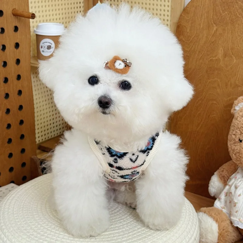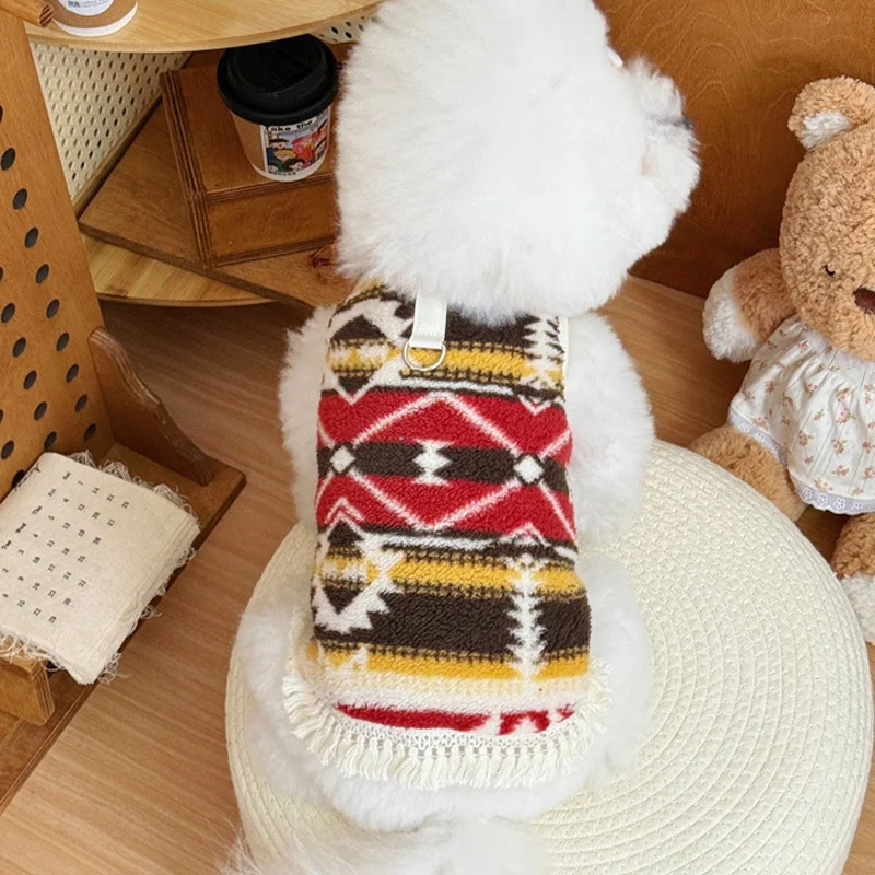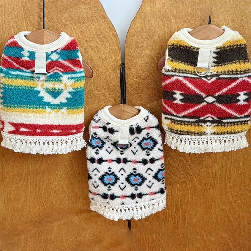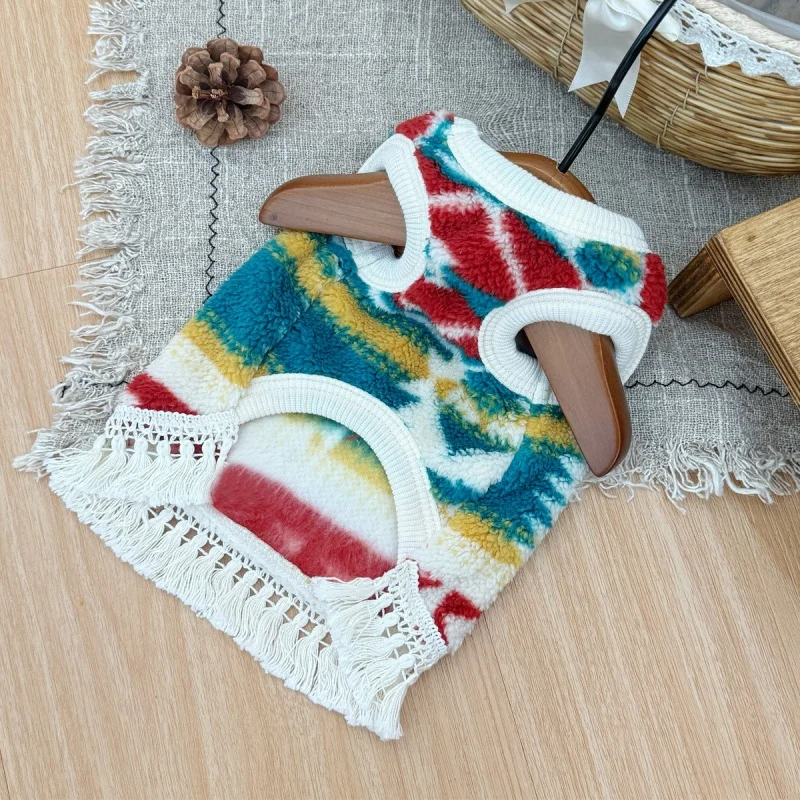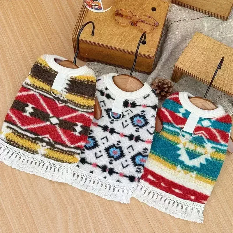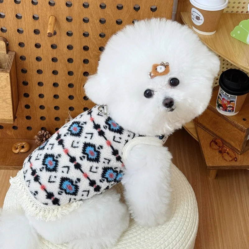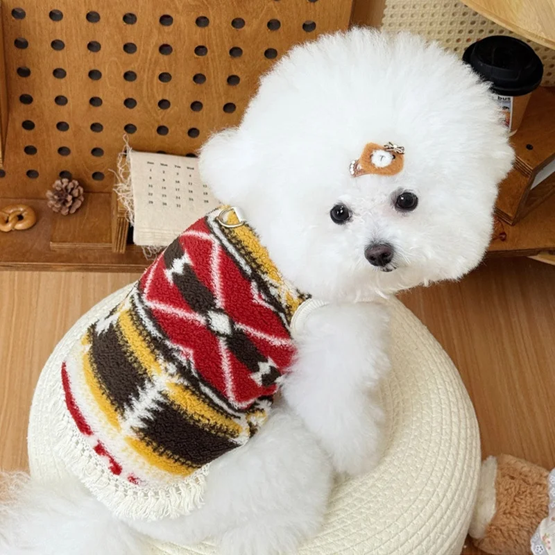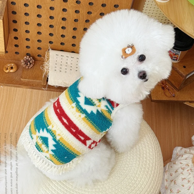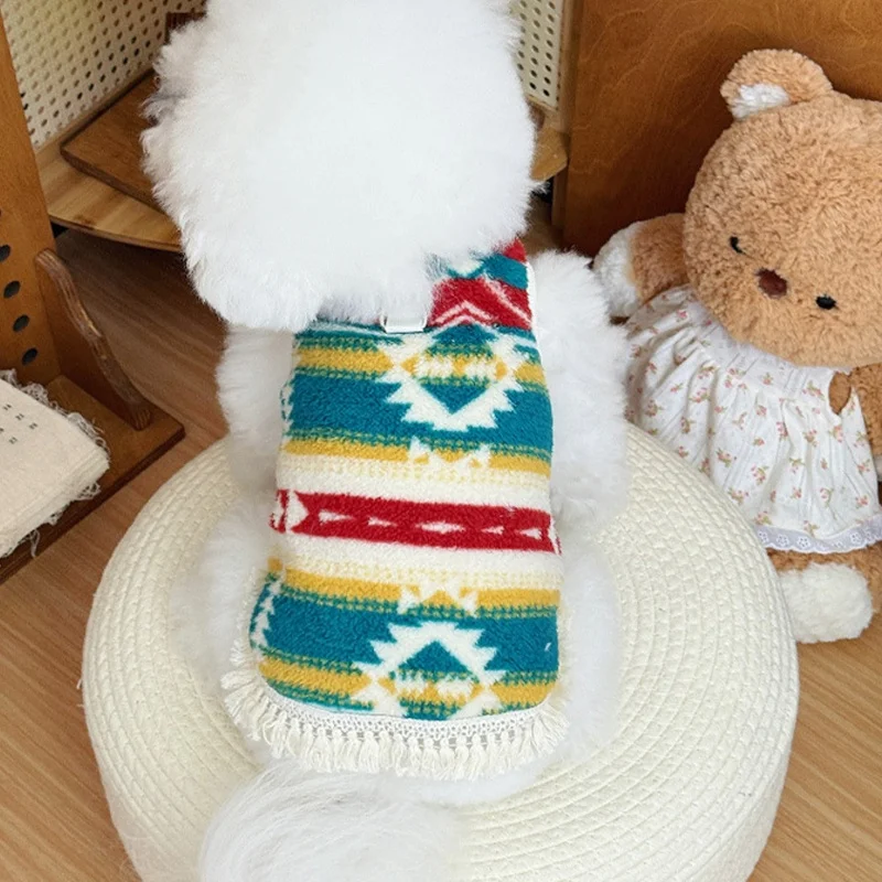 Chaleco cálido de invierno para perros, ropa suave de felpa para perros, sudaderas con capucha con estampado de moda para cachorros, chaleco con borlas bonitas para gatos, chaqueta para mascotas, ropa para caniche Chihuahua