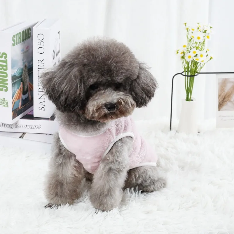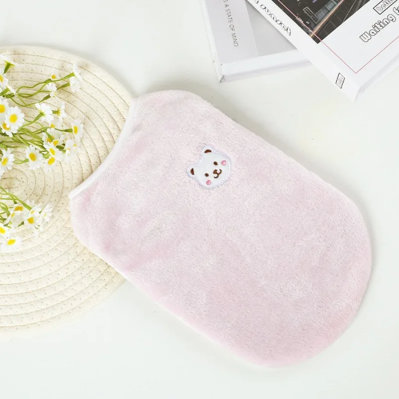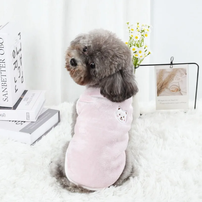 Haga que su mascota sea cómoda y elegante con nuestro chaleco para mascotas con forro de felpa, diseñado profesionalmente para la comodidad diaria en los fríos meses de otoño e invierno.Este chaleco está hecho de tela de felpa de doble cara de alta calidad, que proporciona calidez confiable sin restringir el movimiento y al mismo tiempo ofrece una suavidad especial para la piel de las mascotas.El patrón de oso minimalista en la parte posterior agrega un toque de encanto divertido al diseño simple y multiusos.