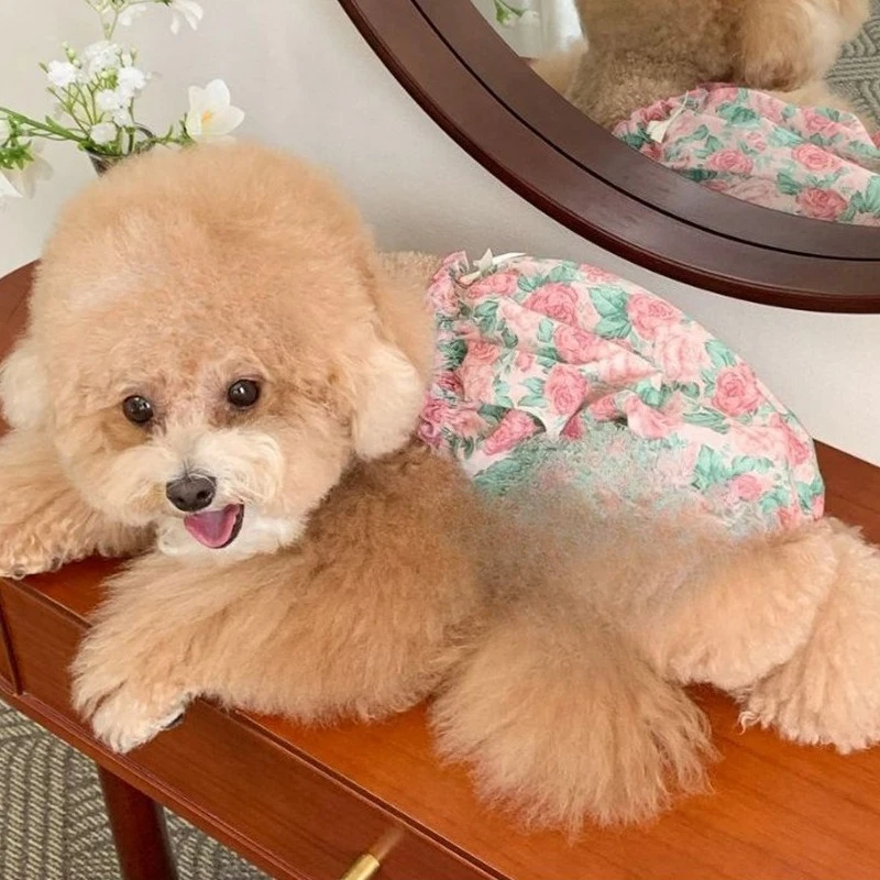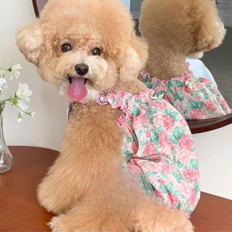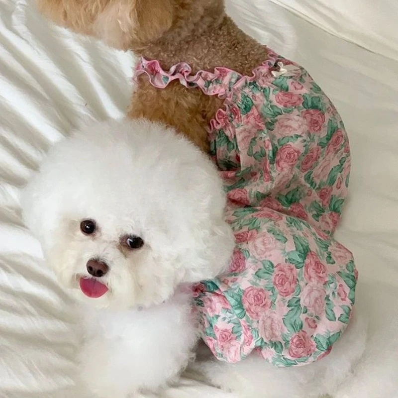 Chaleco camisola Floral de primavera y verano para mascotas, ropa fina de verano para bípedo de mascotas, combinada con Baberos de baba, vestidos para perros pequeños