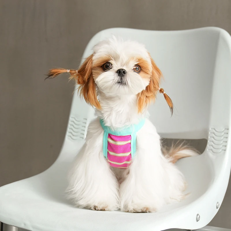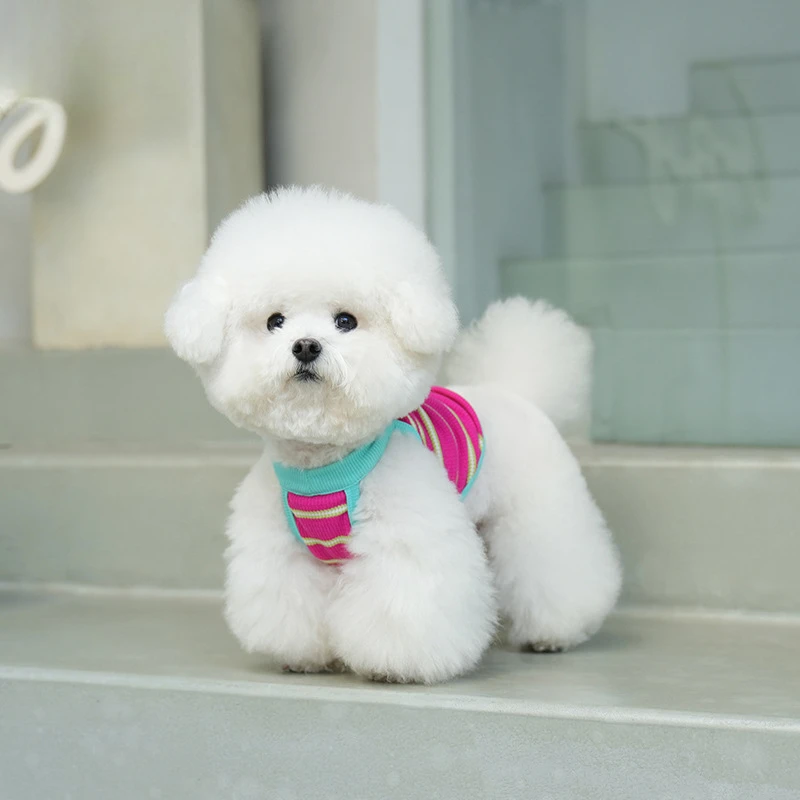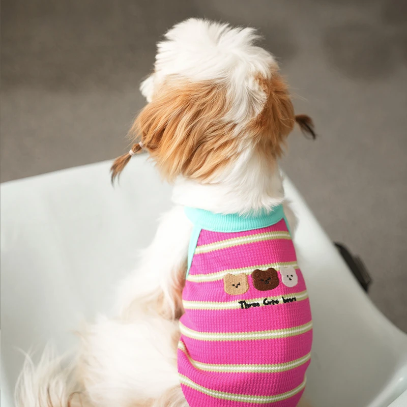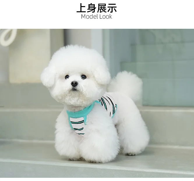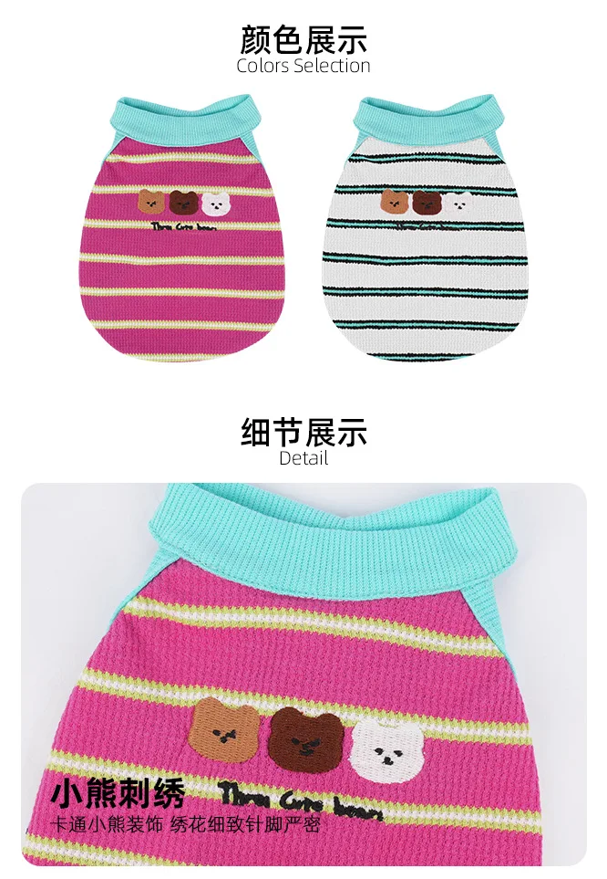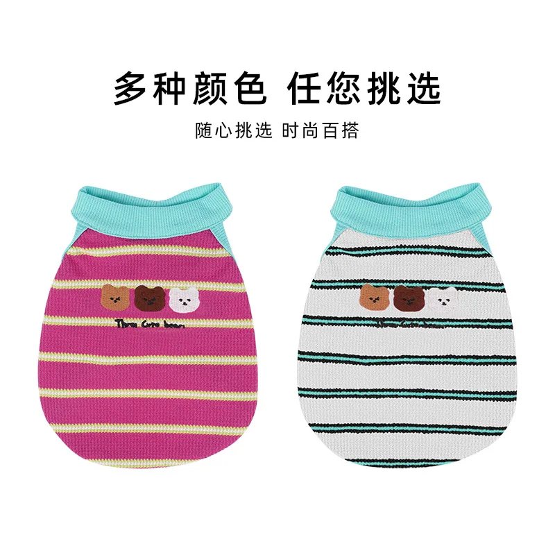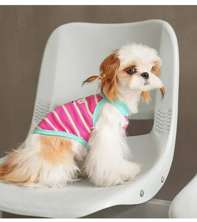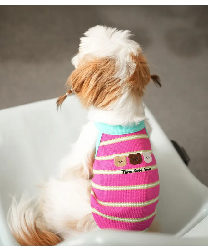 Chaleco camisola a rayas elástico dulce con bordado a rayas de primavera para mascotas en comparación con la ropa para cachorros de Yorkshire