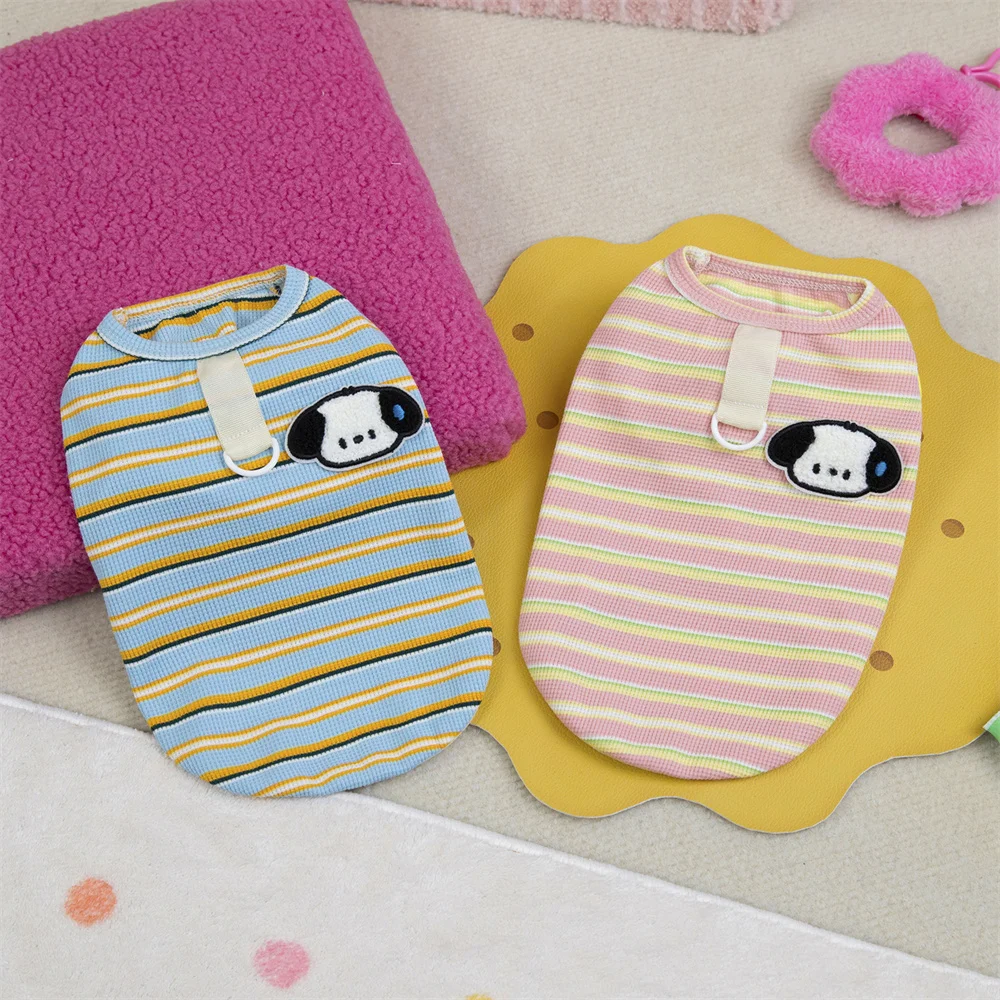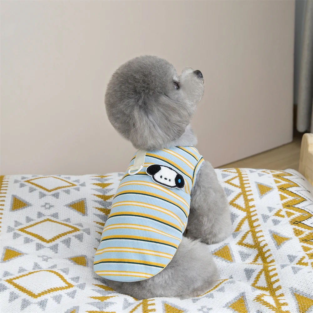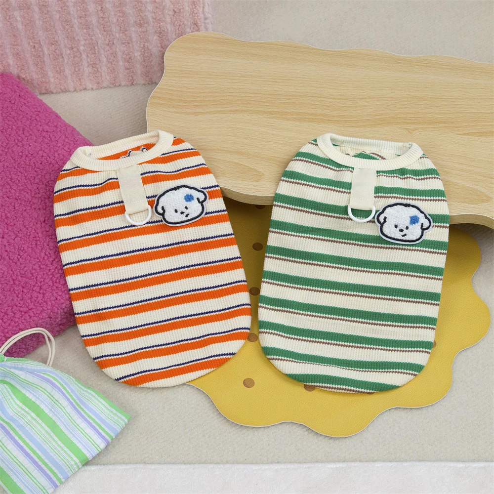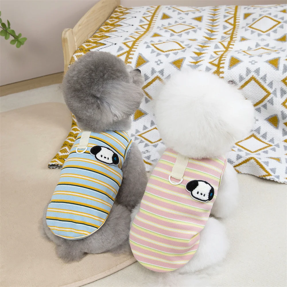 Chaleco clásico a rayas para perros y gatos con anillo de tracción, ropa estampada con cabeza de perro, ropa de verano para mascotas para perros pequeños, gatos, cachorros, caniche, Pomerania