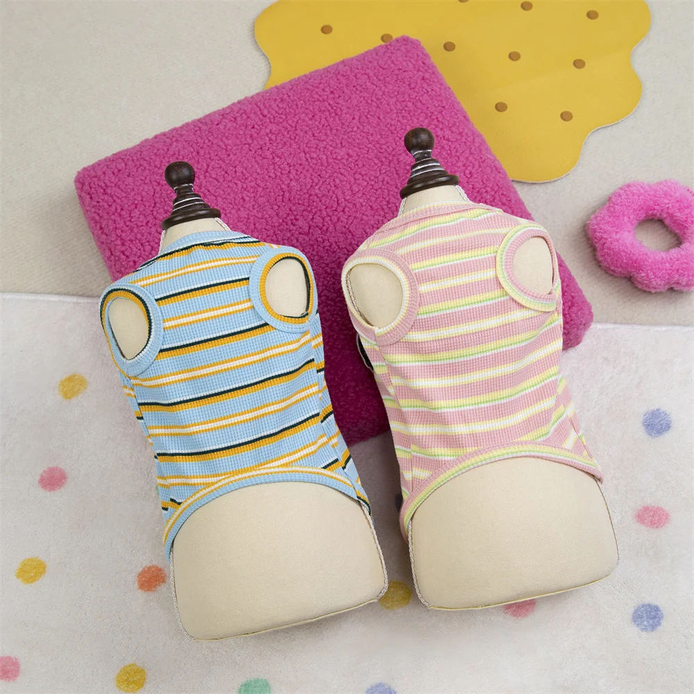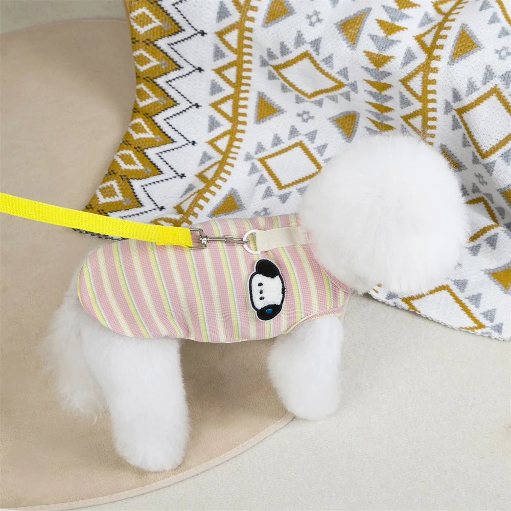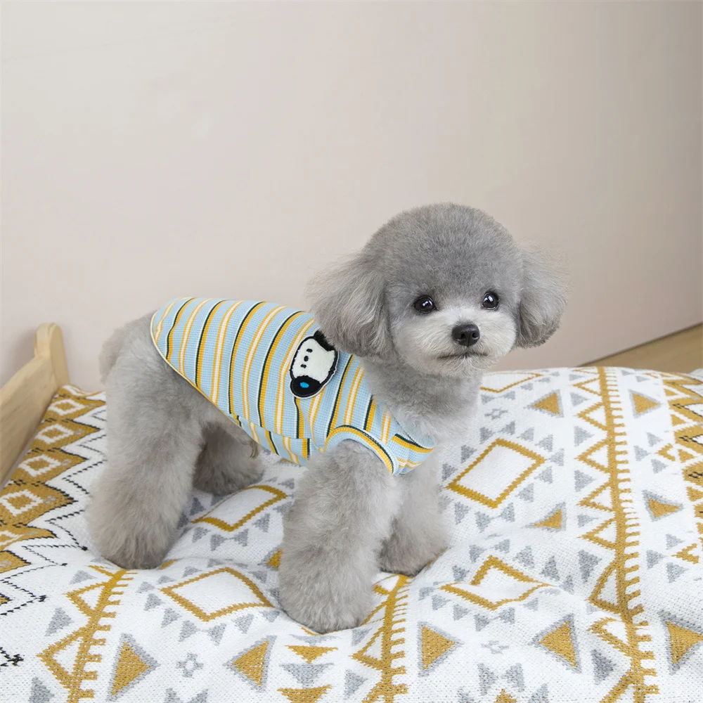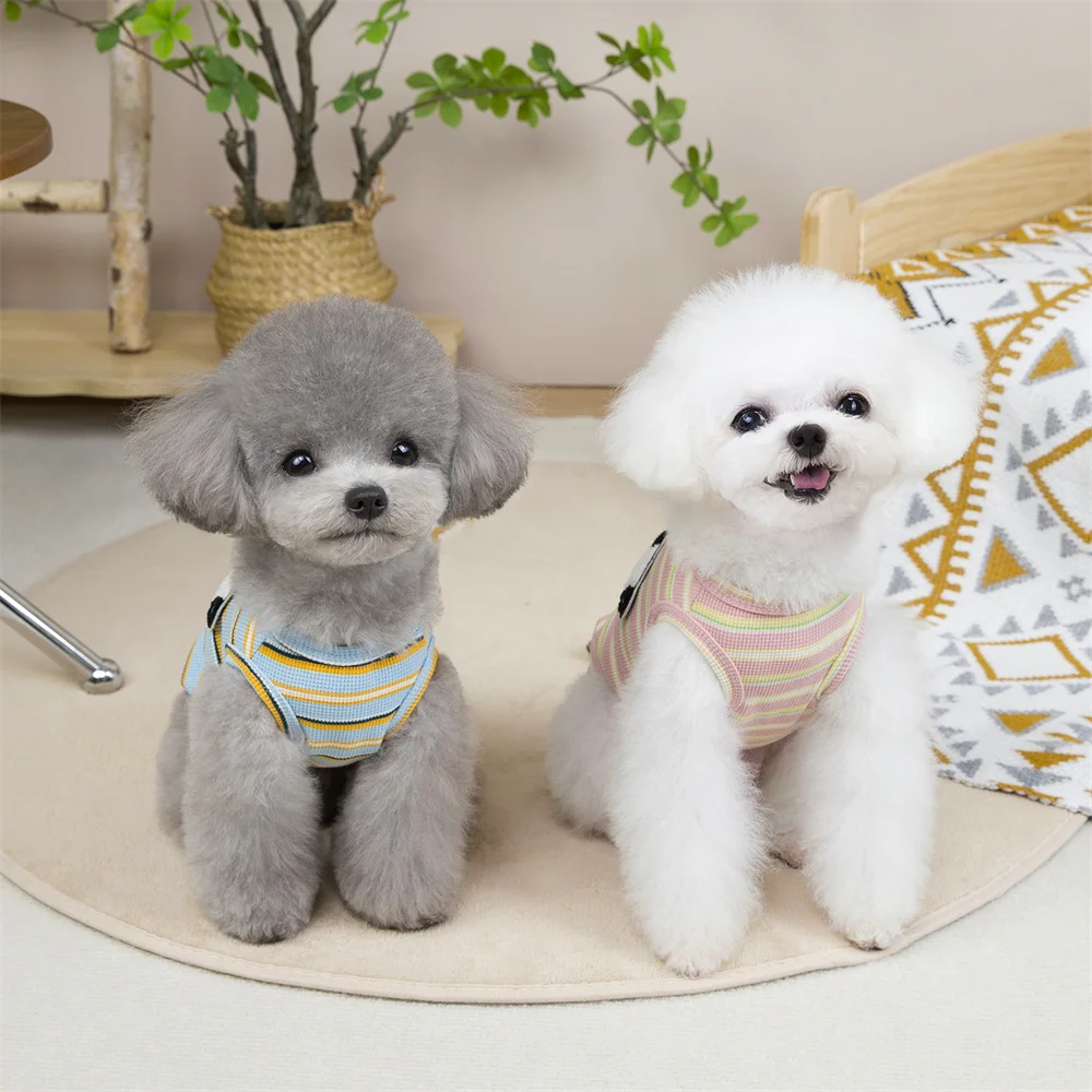 Chaleco clásico a rayas para perros y gatos con anillo de tracción, ropa estampada con cabeza de perro, ropa de verano para mascotas para perros pequeños, gatos, cachorros, caniche, Pomerania