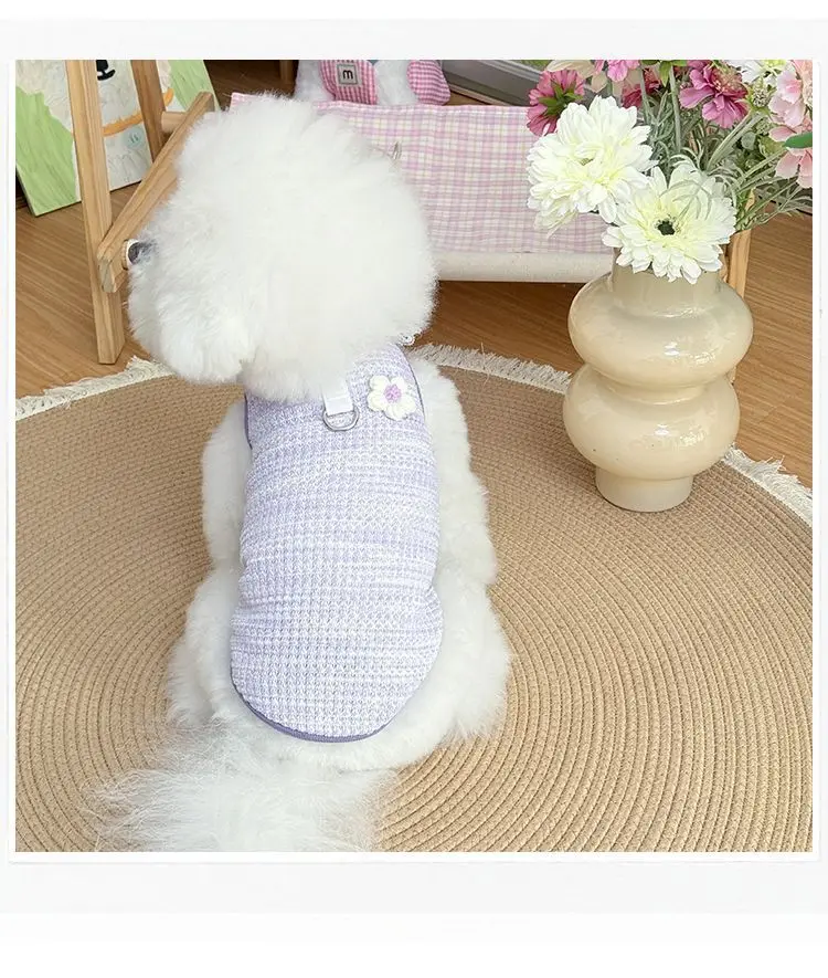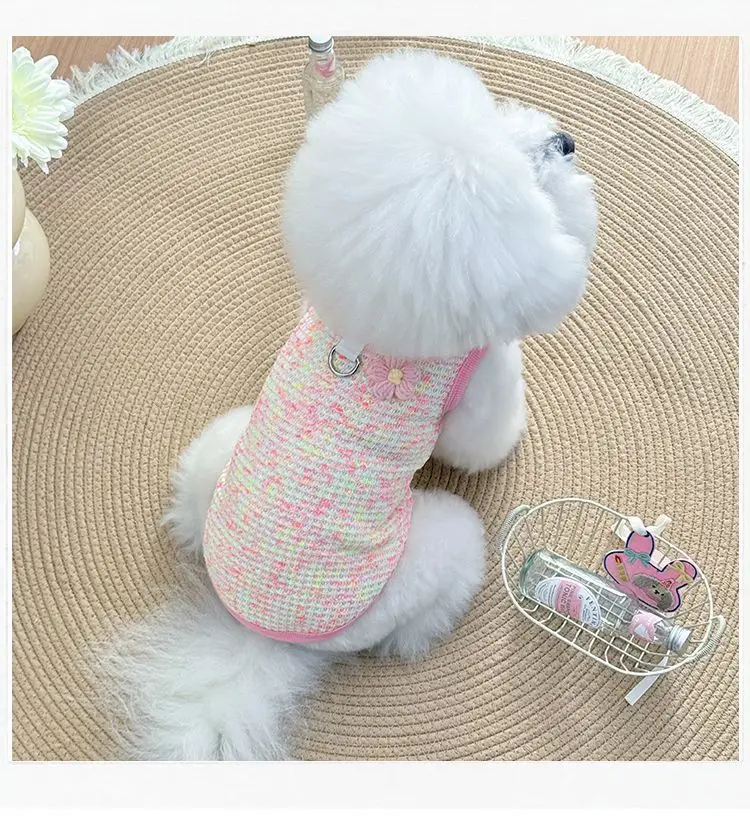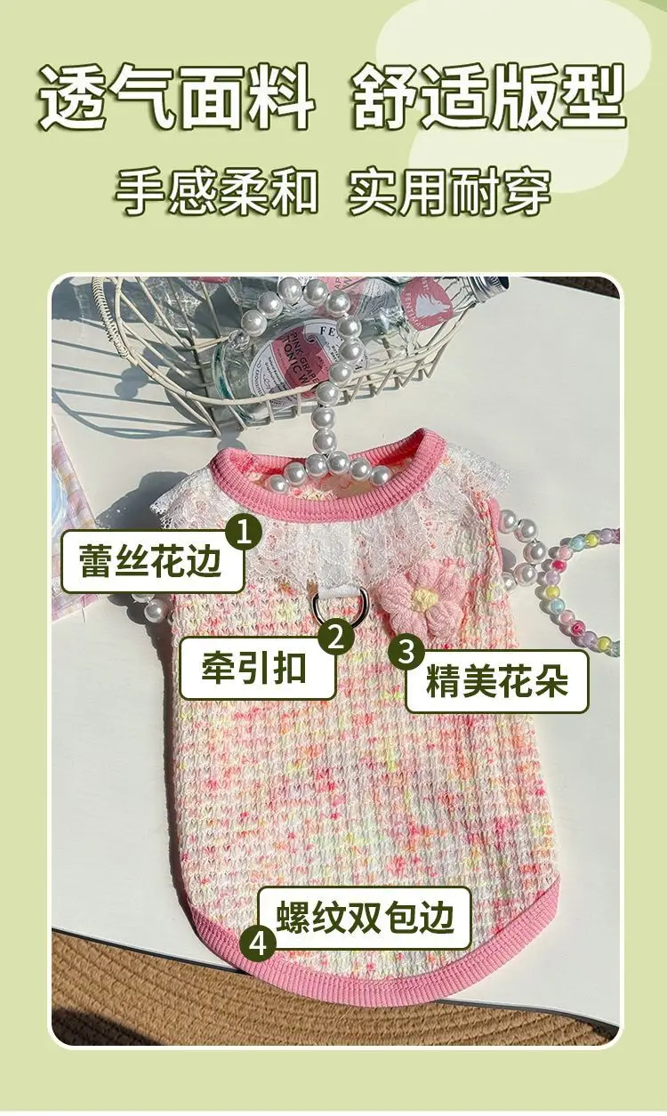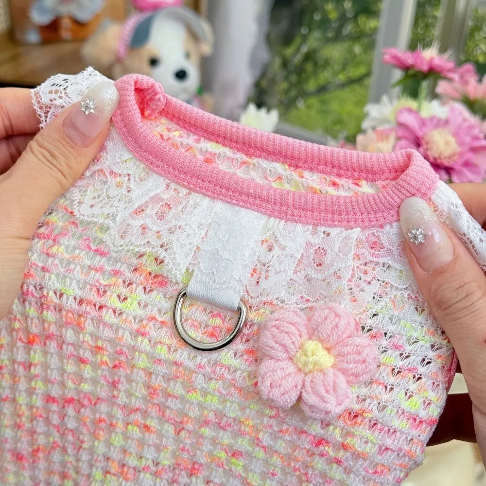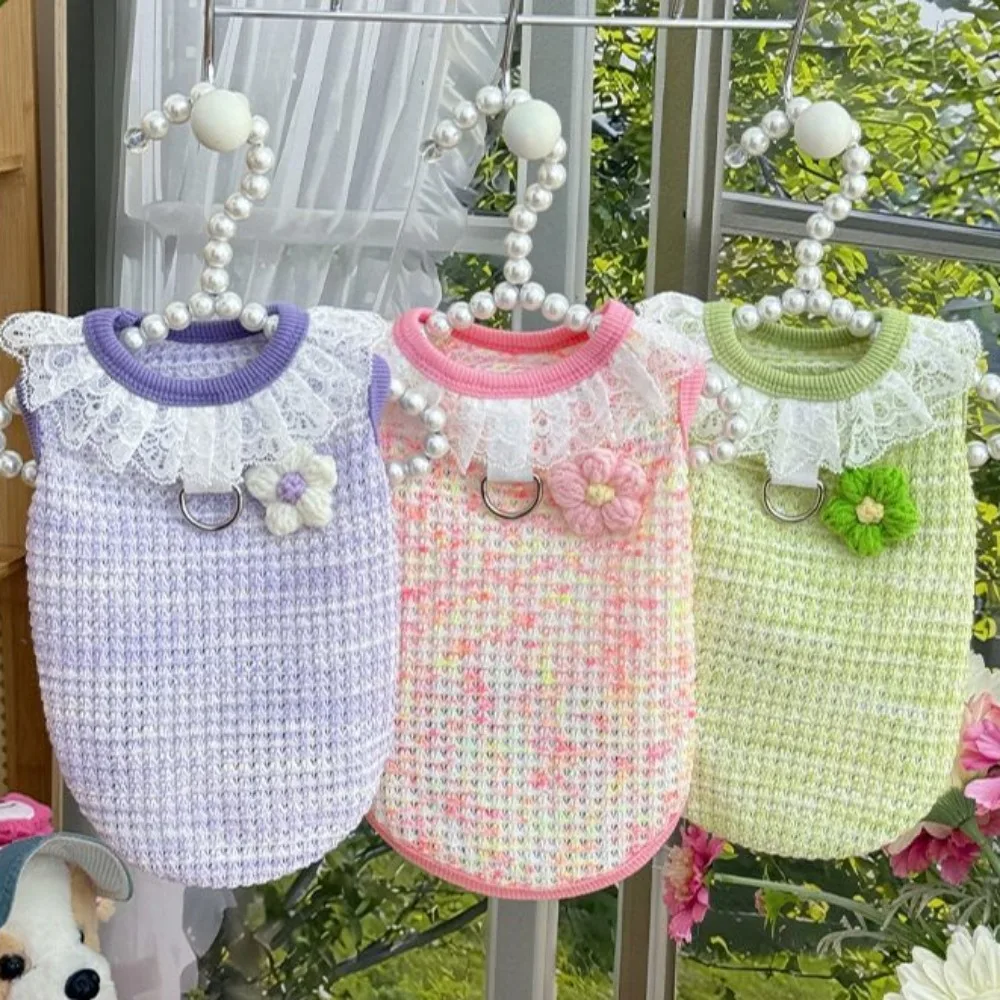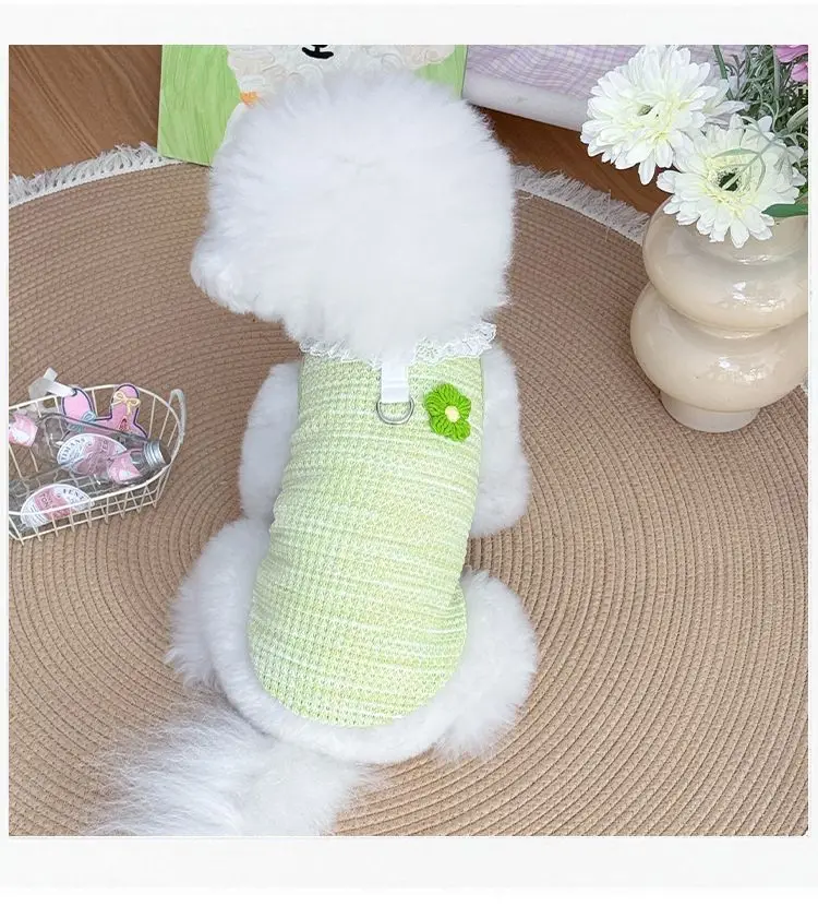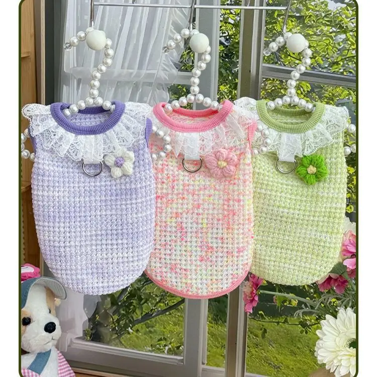 Chaleco colorido de primavera para mascotas, camisa Base con cuello de encaje para perros y gatos, ropa para mascotas, chaleco de peluche, ropa cómoda para cachorros, pijamas para perros