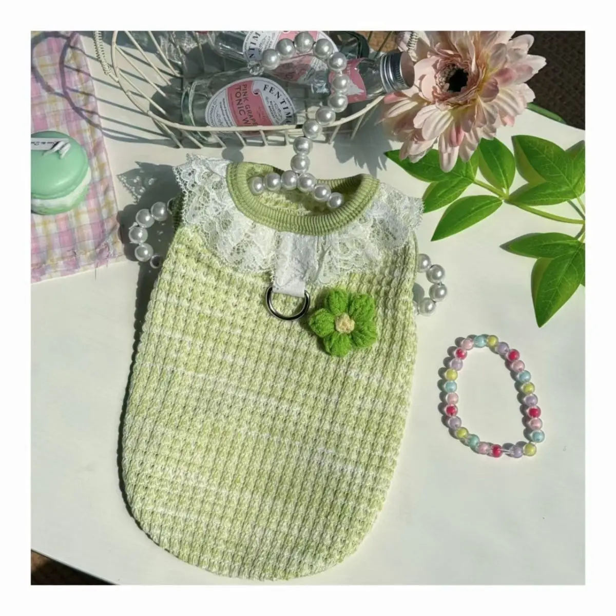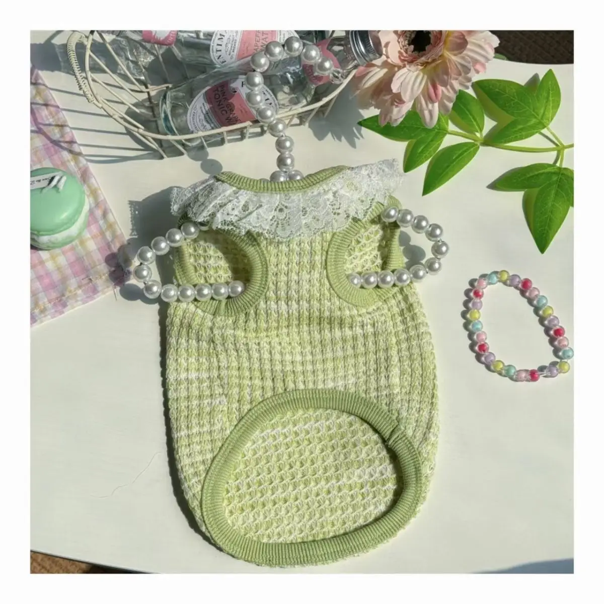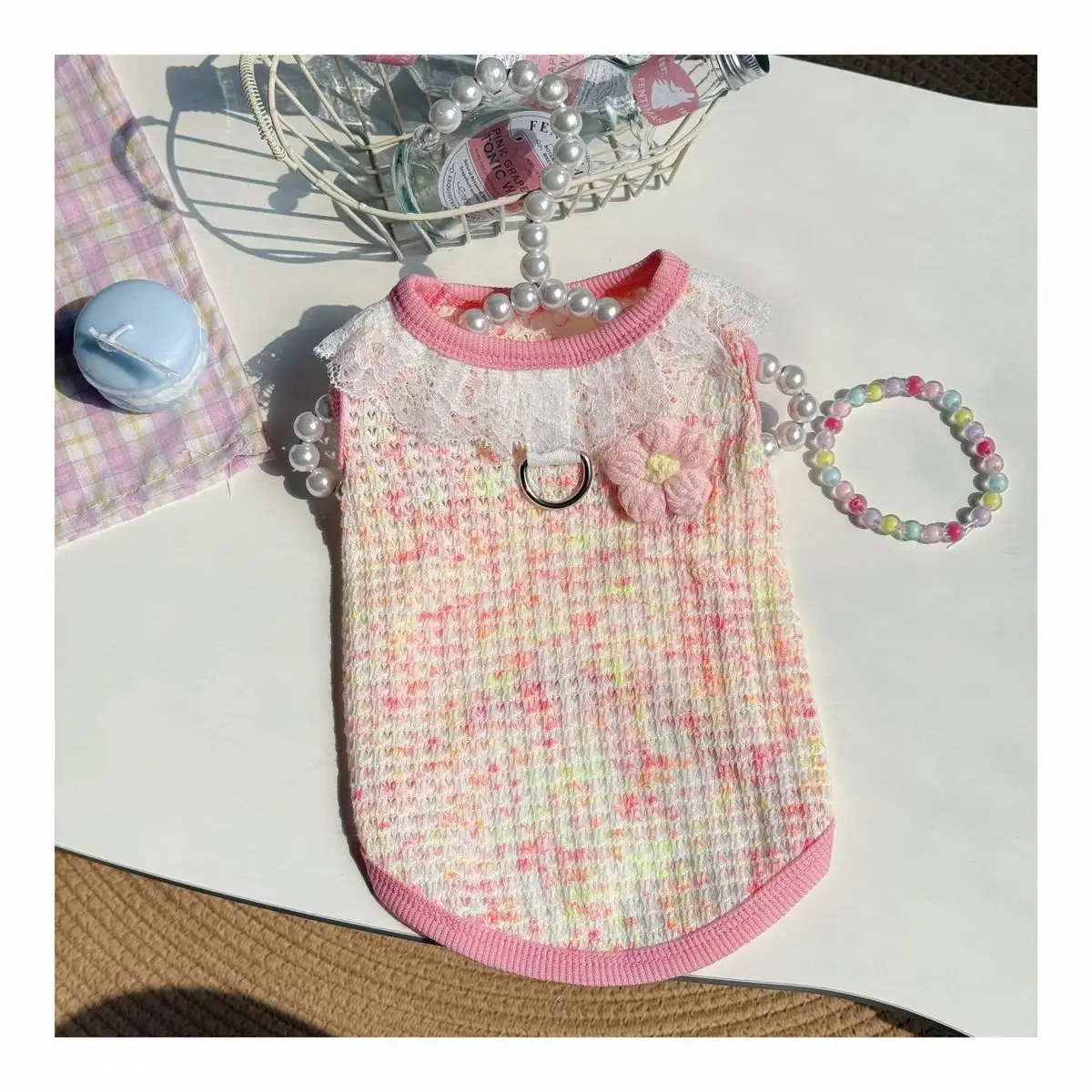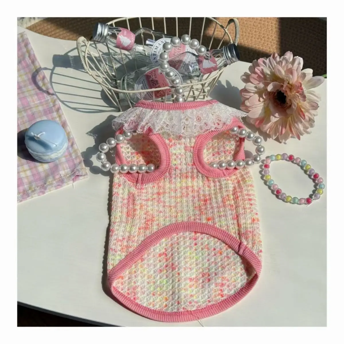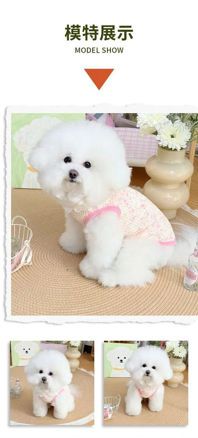 Chaleco colorido de primavera para mascotas, camisa Base con cuello de encaje para perros y gatos, ropa para mascotas, chaleco de peluche, ropa cómoda para cachorros, pijamas para perros
