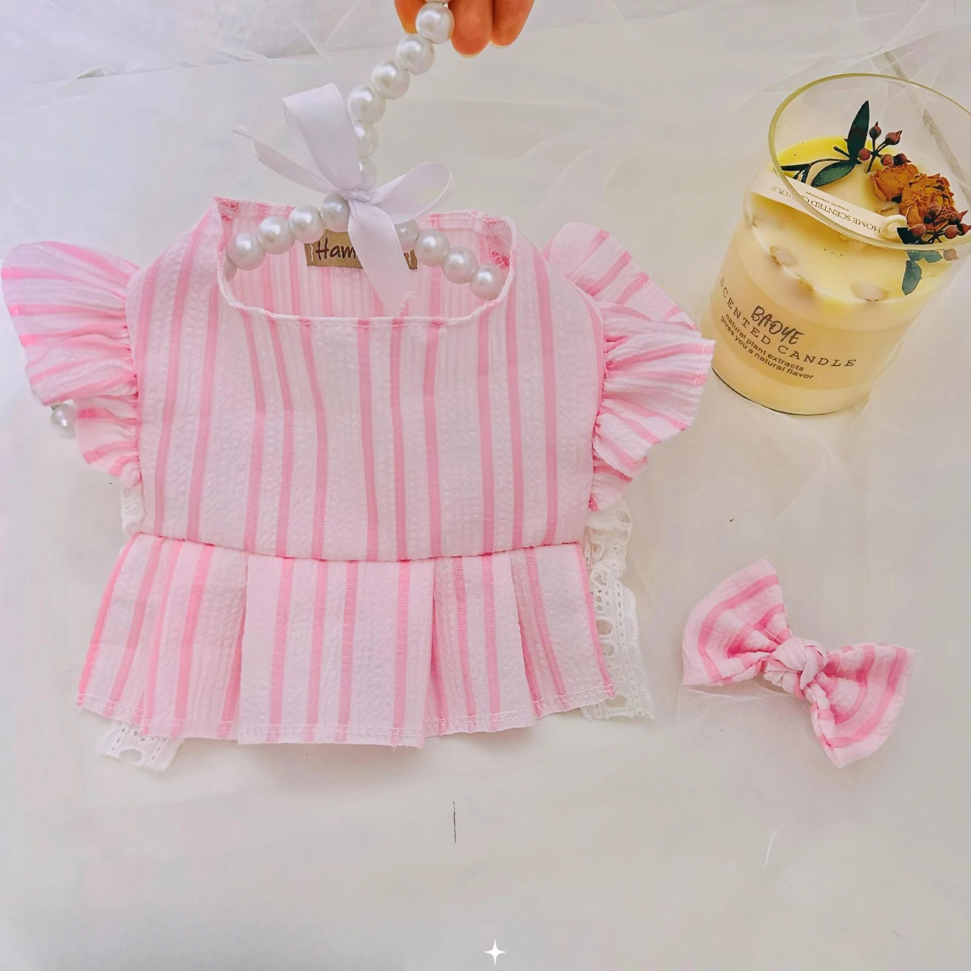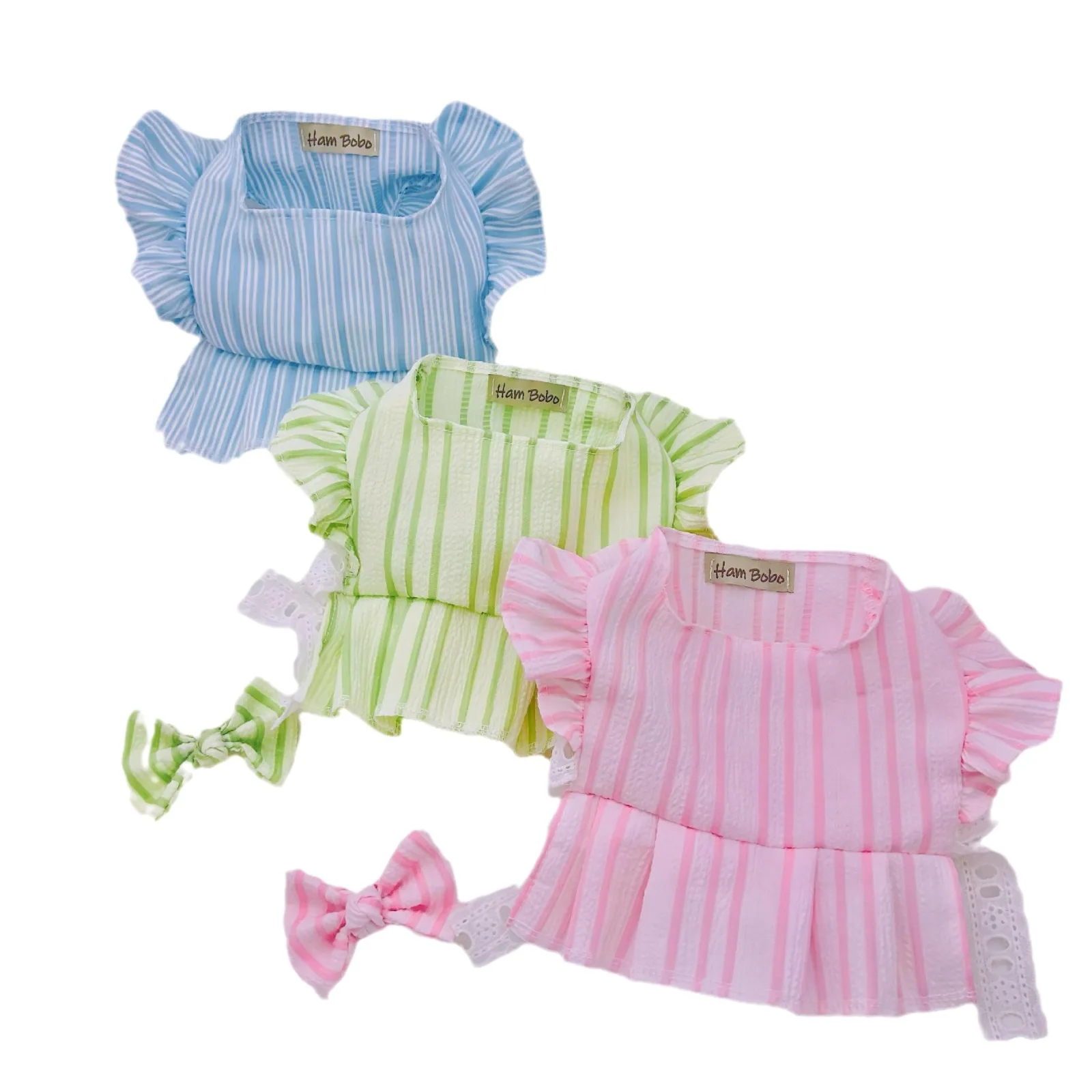 Chaleco corto a rayas para mascotas con mangas de burbujas y lazo de mariposa, ropa para mascotas, chaleco refrescante para perros, camisa para mascotas, ropa para cachorros