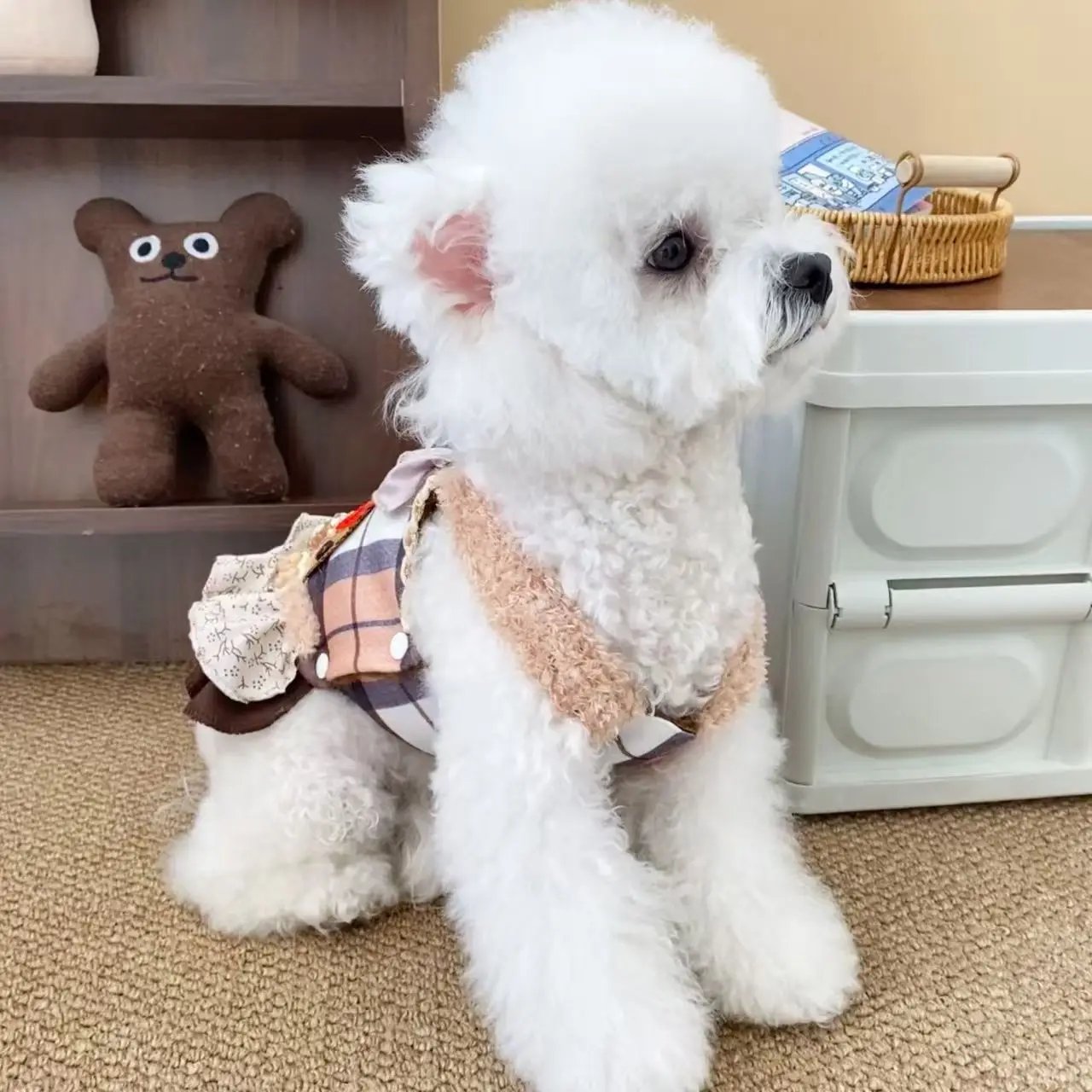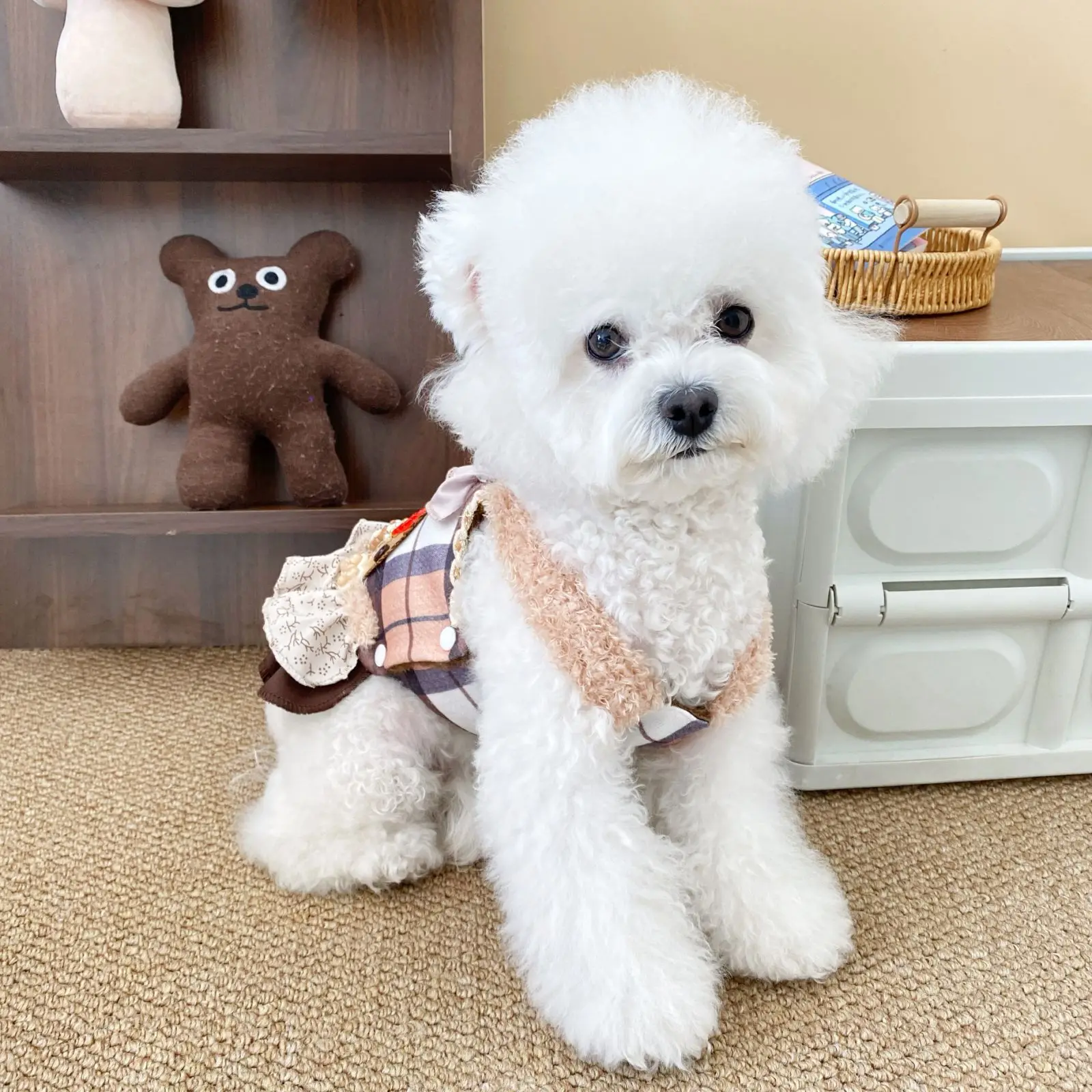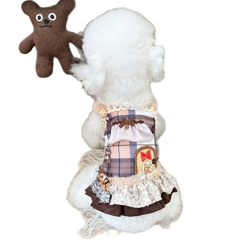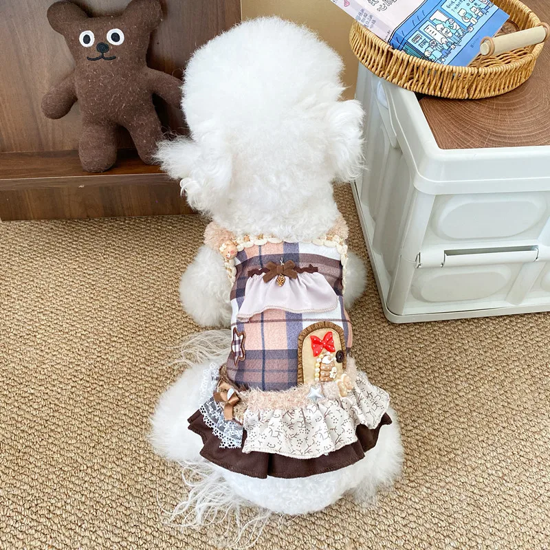 Chaleco a cuadros para primavera/verano para mascotas, vestido de princesa, vestido bonito de peluche para perros y gatos, vestidos para perros pequeños, ropa para cachorros