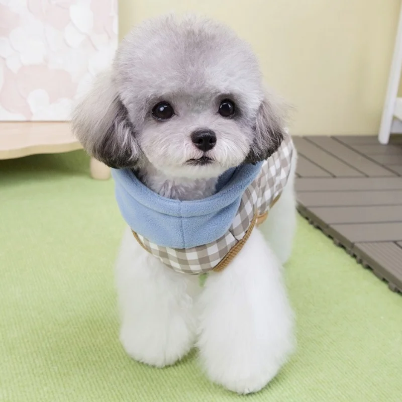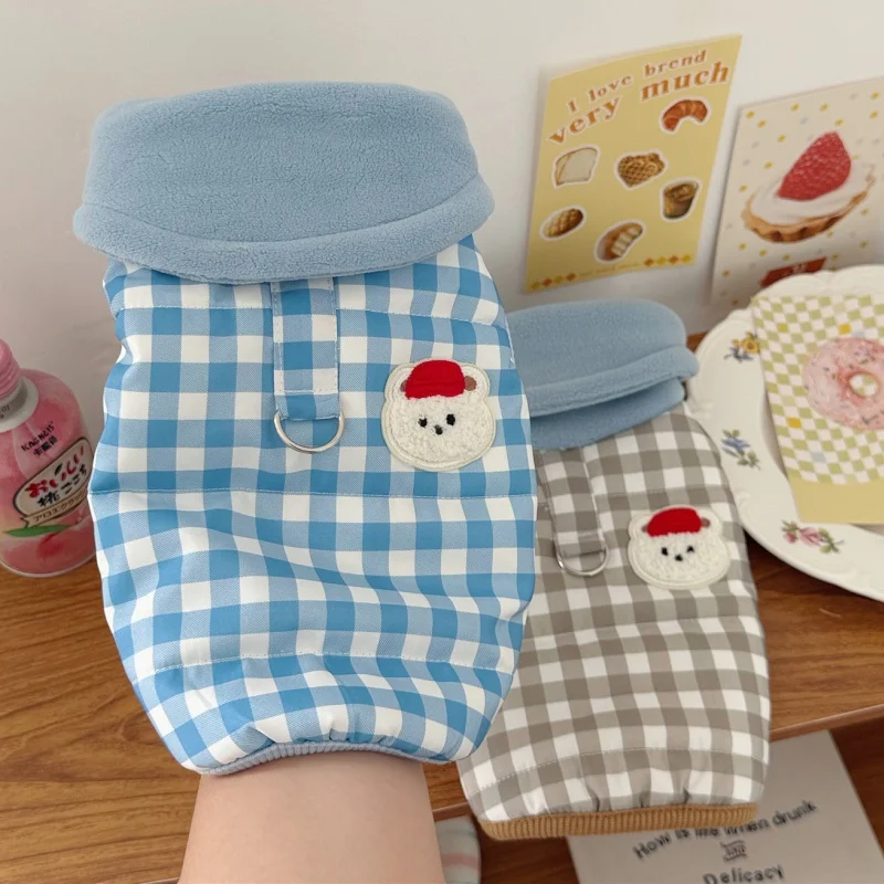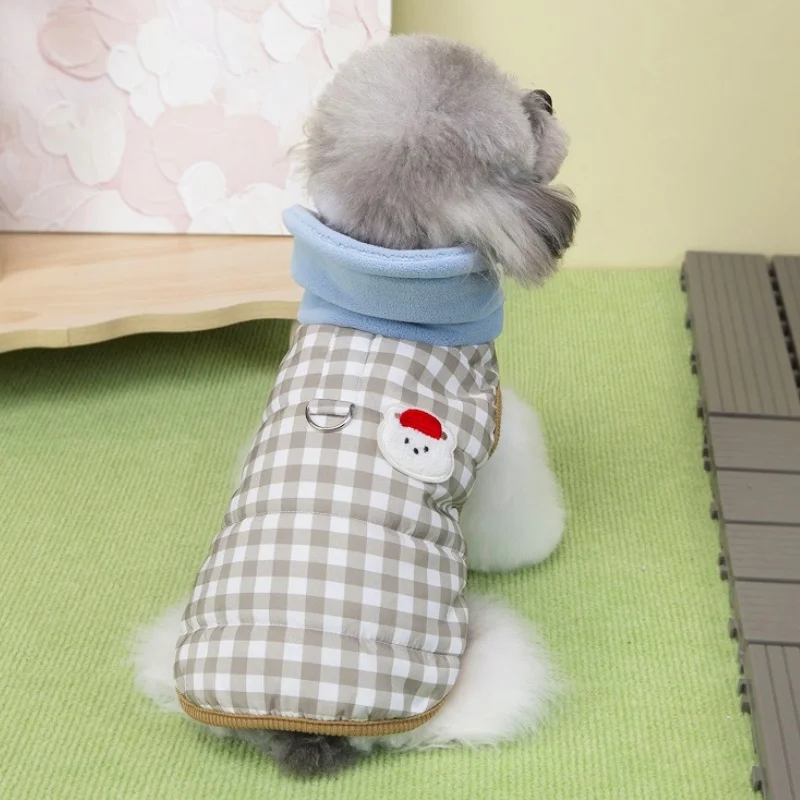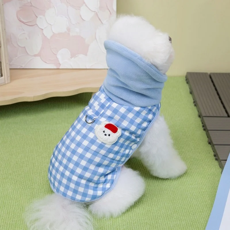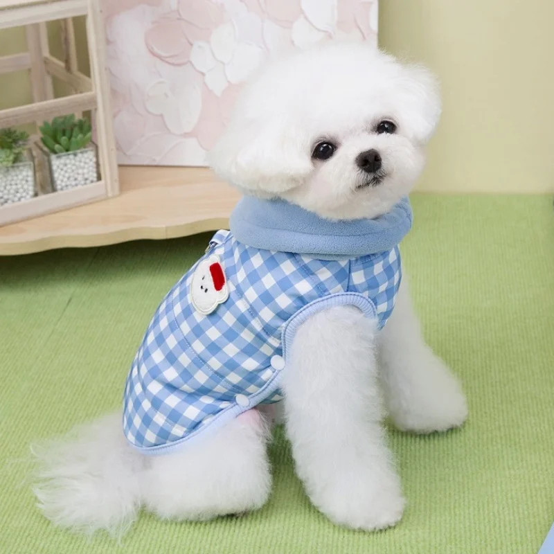 Chaleco para perro de cuello alto a la moda, chaqueta, ropa de invierno para perro, abrigo bonito a cuadros para cachorros, chaqueta suave y cálida para gato, abrigo para mascotas, ropa Bichon