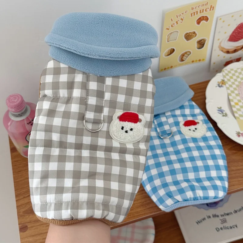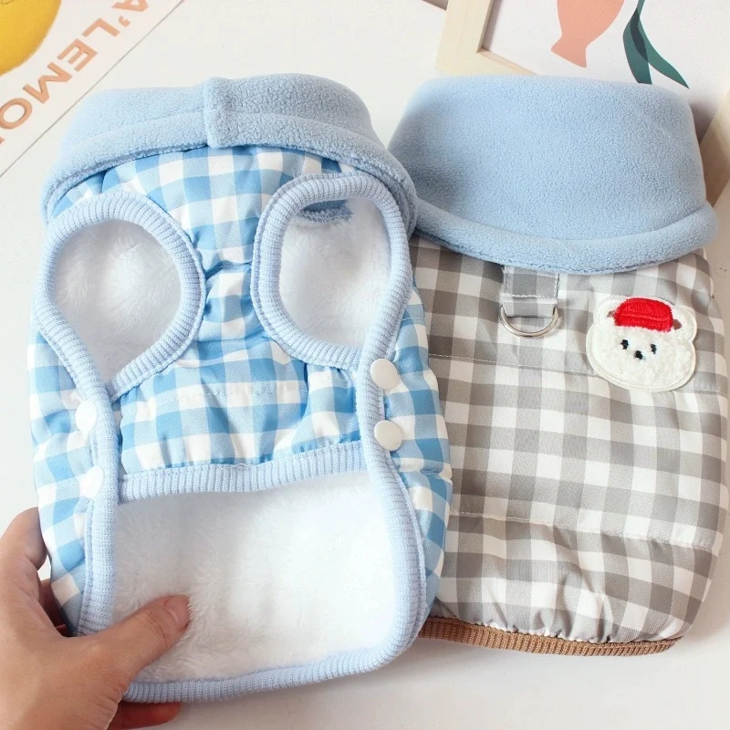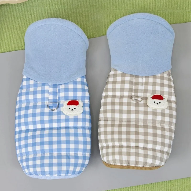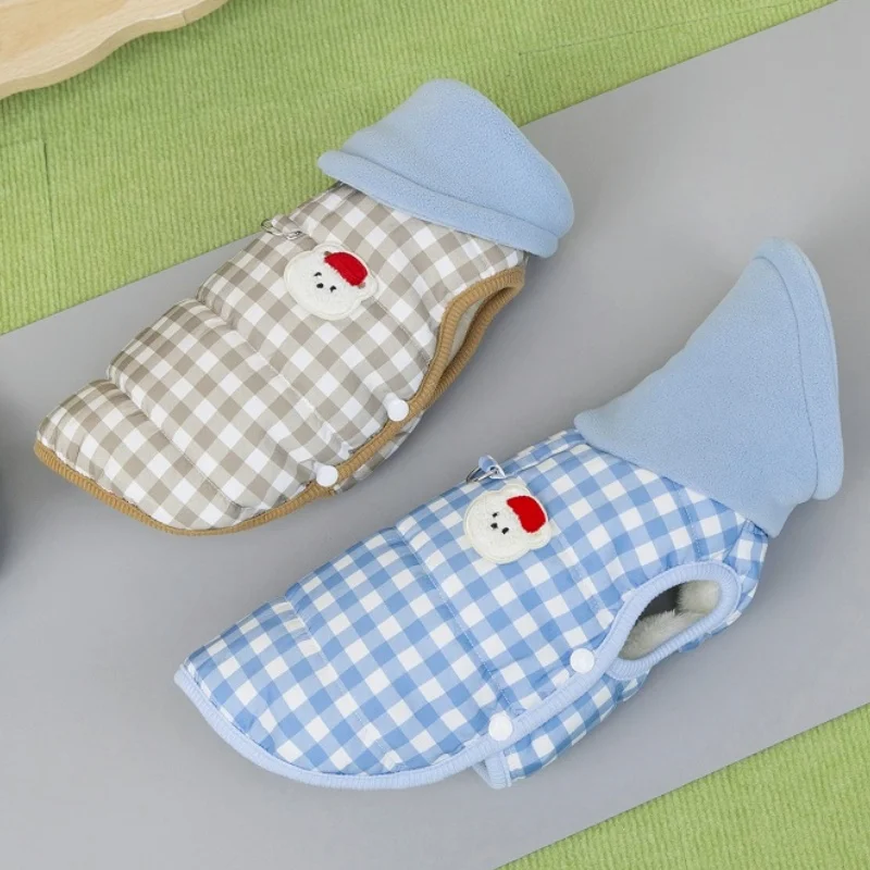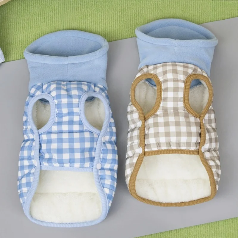 Chaleco para perro de cuello alto a la moda, chaqueta, ropa de invierno para perro, abrigo bonito a cuadros para cachorros, chaqueta suave y cálida para gato, abrigo para mascotas, ropa Bichon