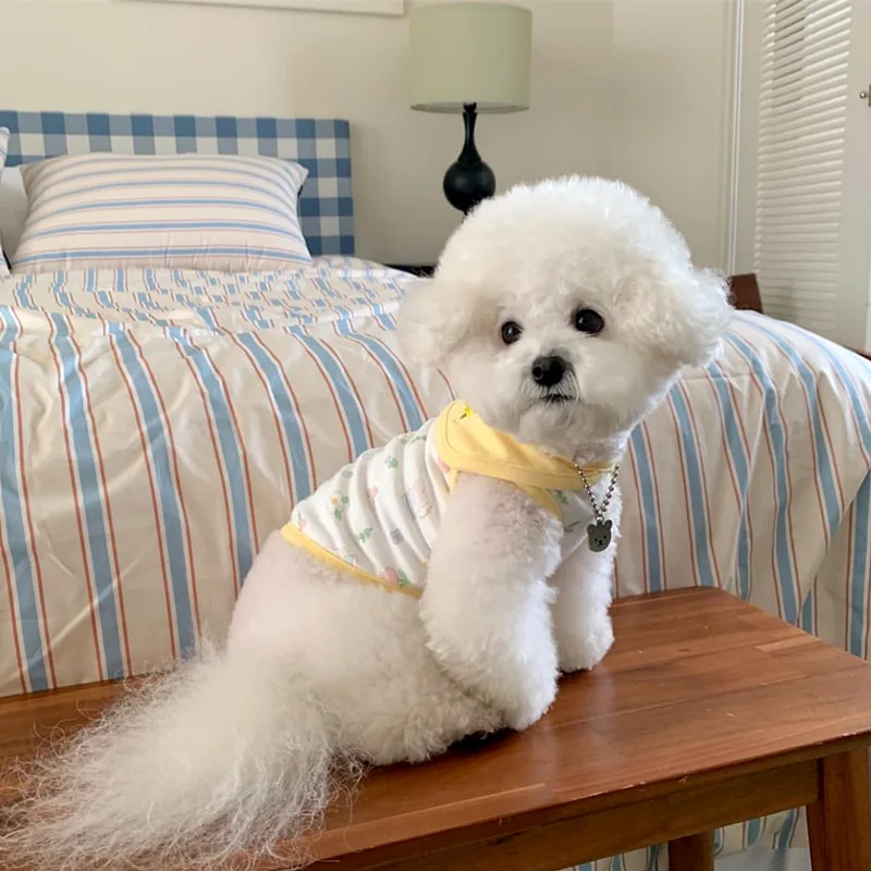Chaleco con cuello Floral para mascotas, Teddy fino para perros Yorkshire, vestido para parejas de perros y gatos, ropa para cachorros pequeños