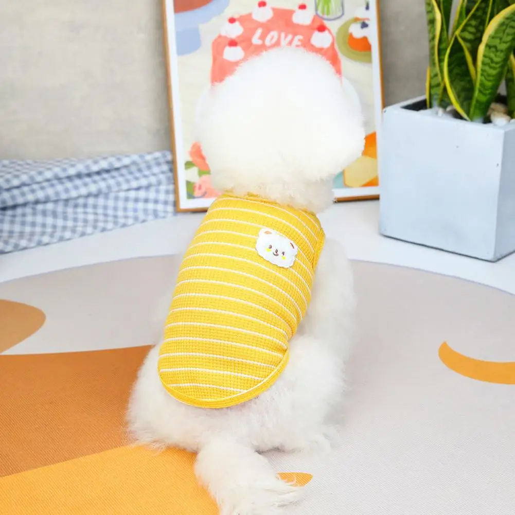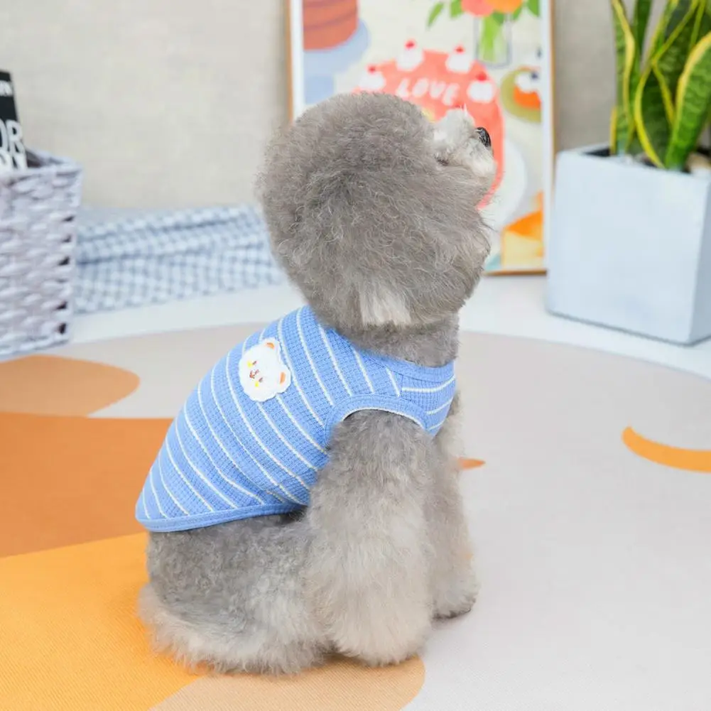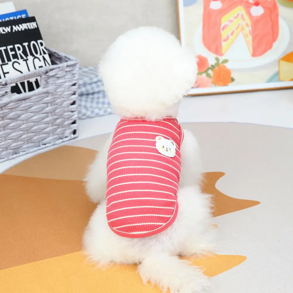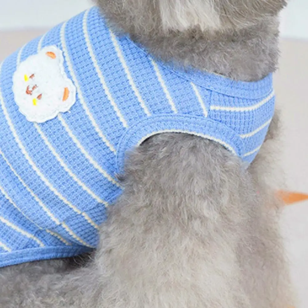 Con un diseño de algodón altamente elástico, el chaleco para mascotas es cómodo de llevar y es perfecto para perros. El estilo a rayas con un lindo oso puede hacer que su mascota sea más juguetona.