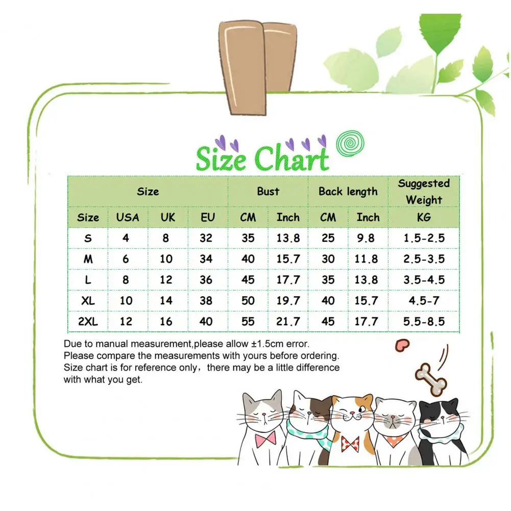 Tamaño: 2XL, busto: 55cm/21,7 ", longitud de espalda: 45cm/17,7", peso recomendado: 5,5-8,5 kg (aprox.)
