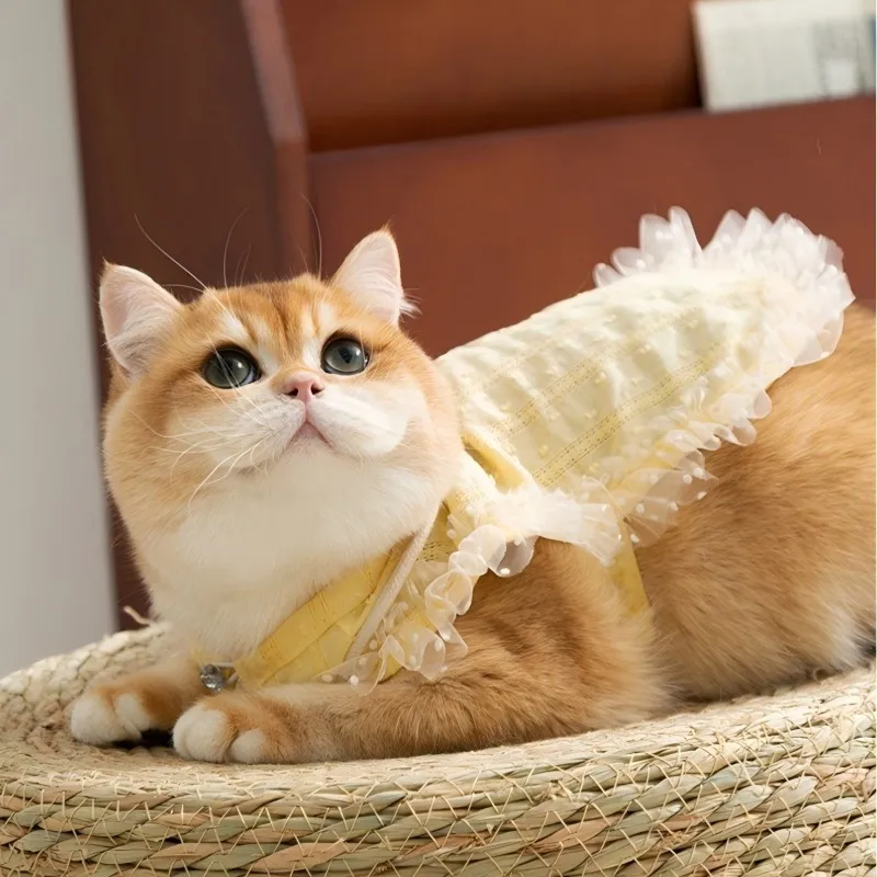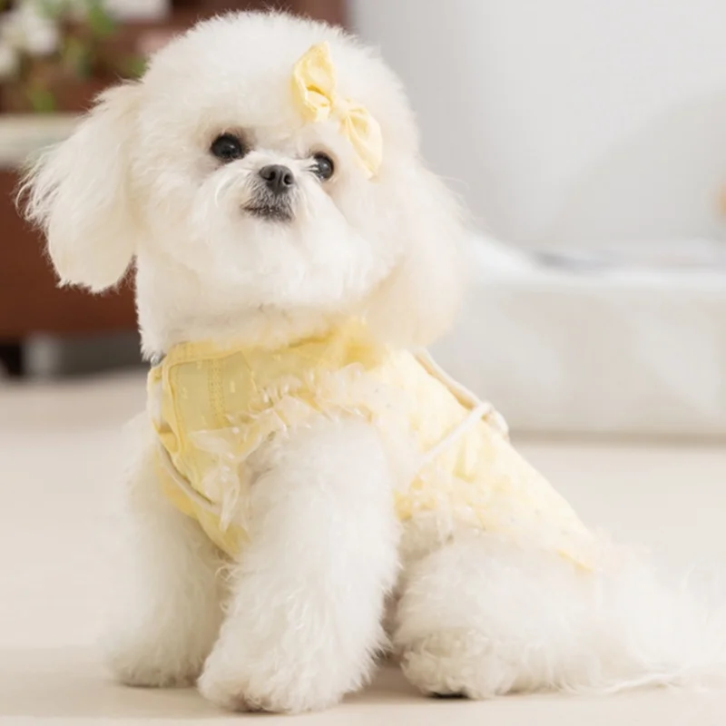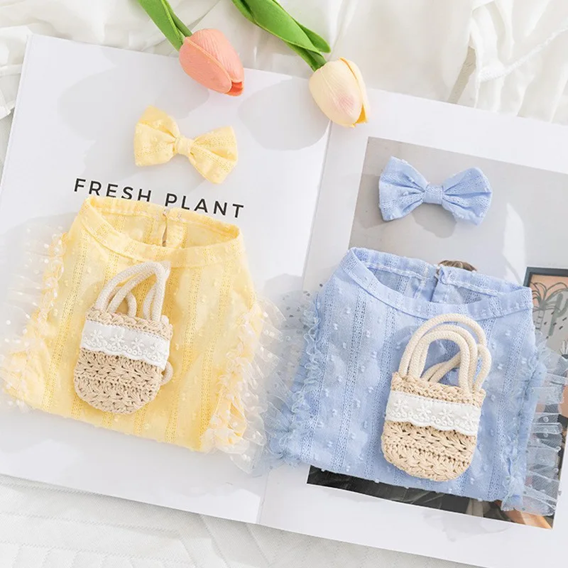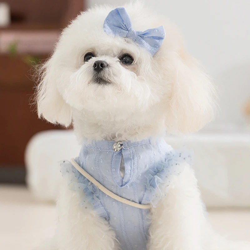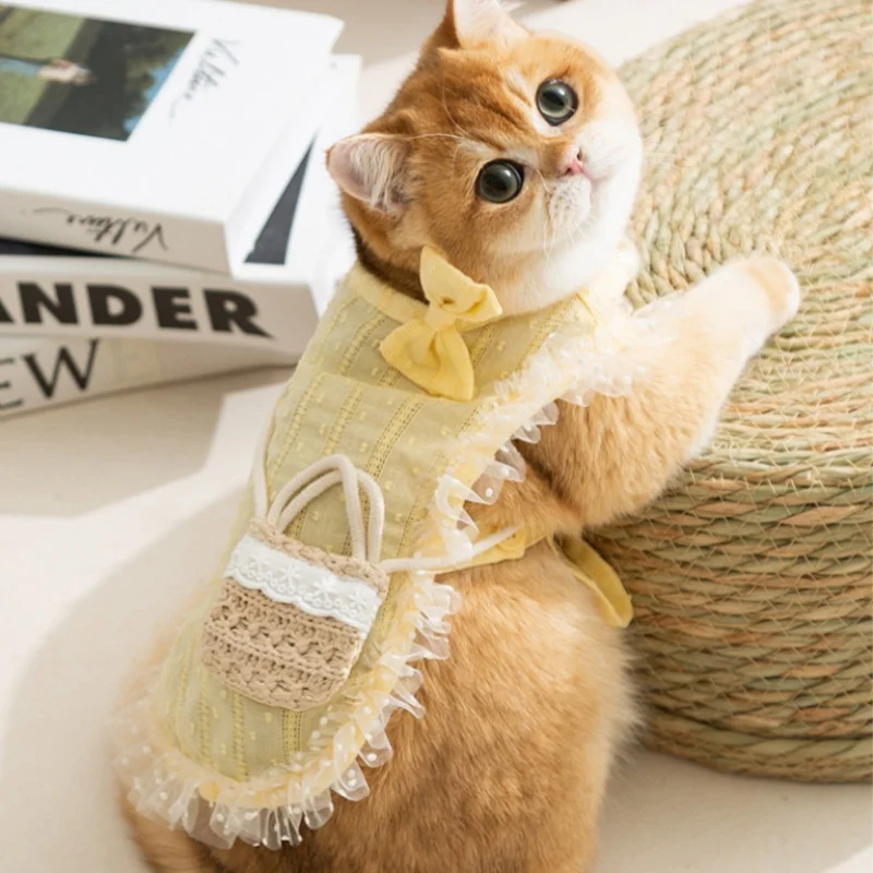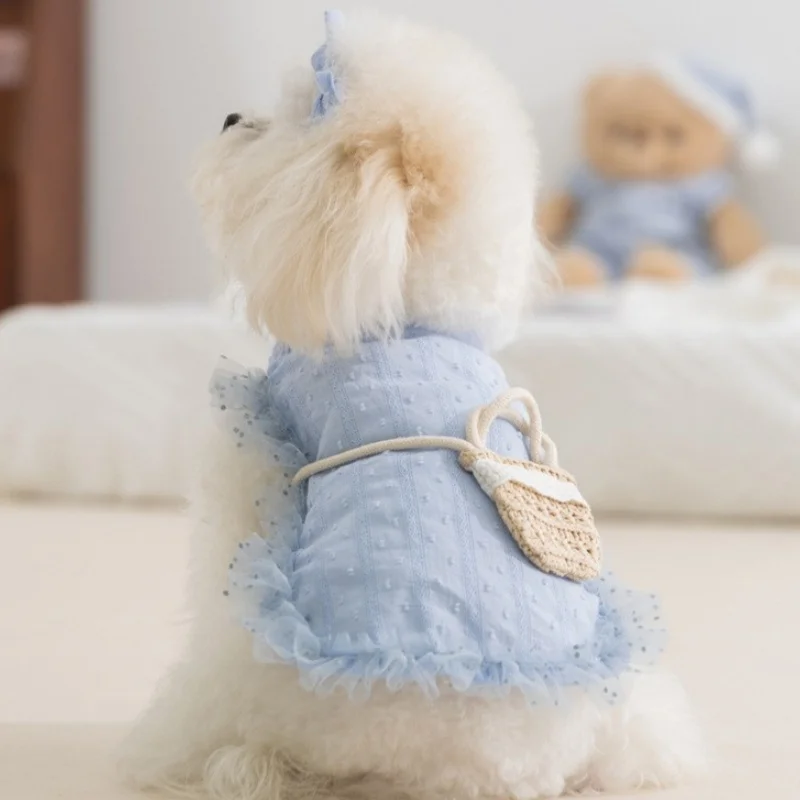 Chaleco de encaje a la moda para perros, ropa de estilo Pastoral para perros, sudadera de verano para cachorros con bolsa, camisa bonita con lazo para gatos, chaleco para mascotas, disfraz de caniche