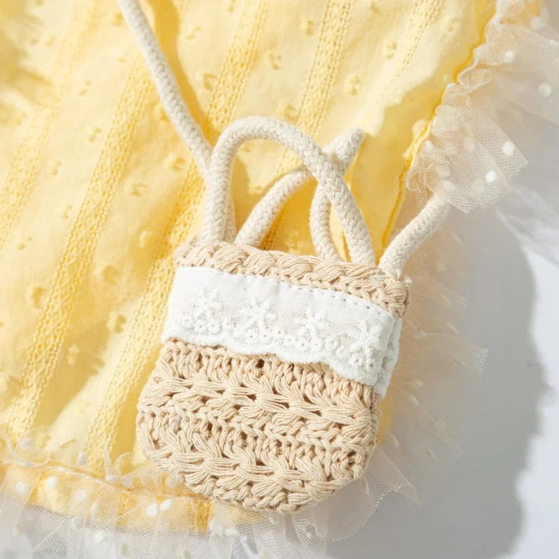 Característica:Camiseta sin mangas pequeña fresca/Jugar con una bolsa en la espalda/Lleno de estilo pastoral/Exquisito y encantador/Diseño de botones/Fácil de usar