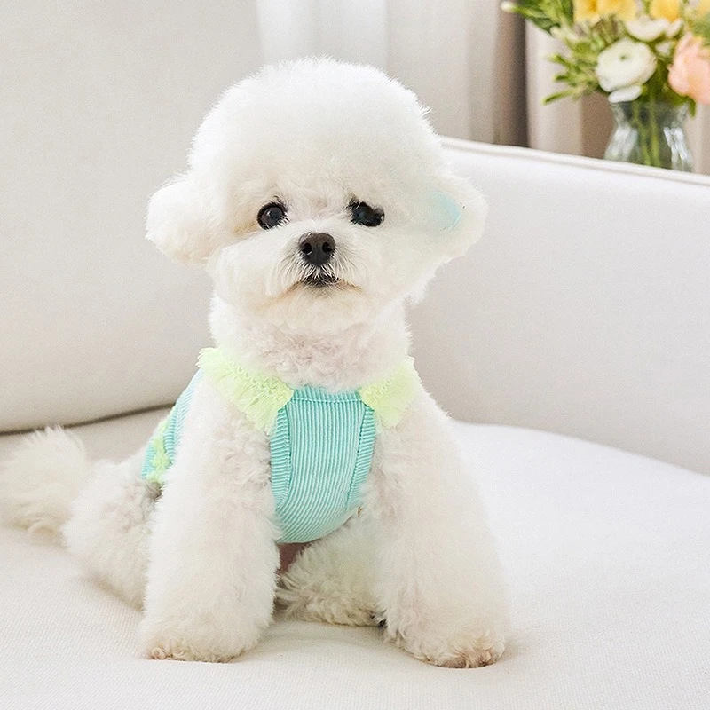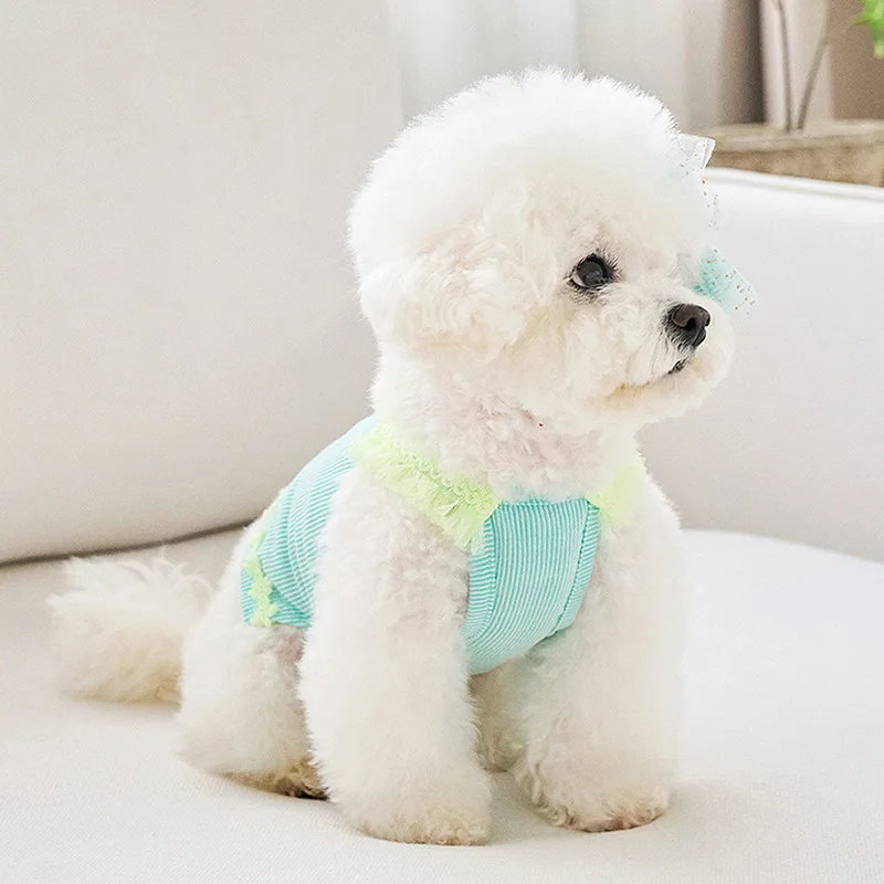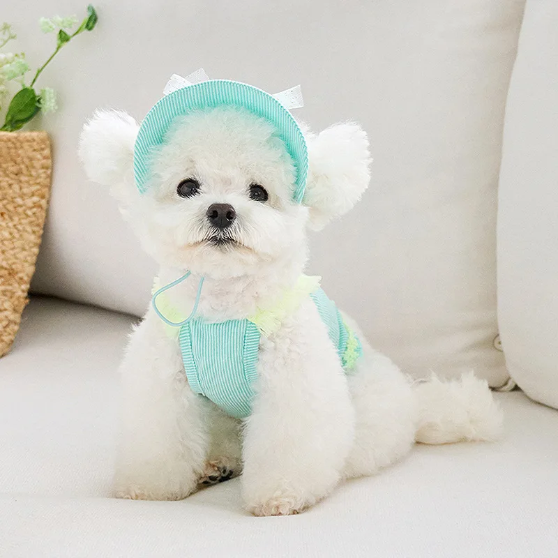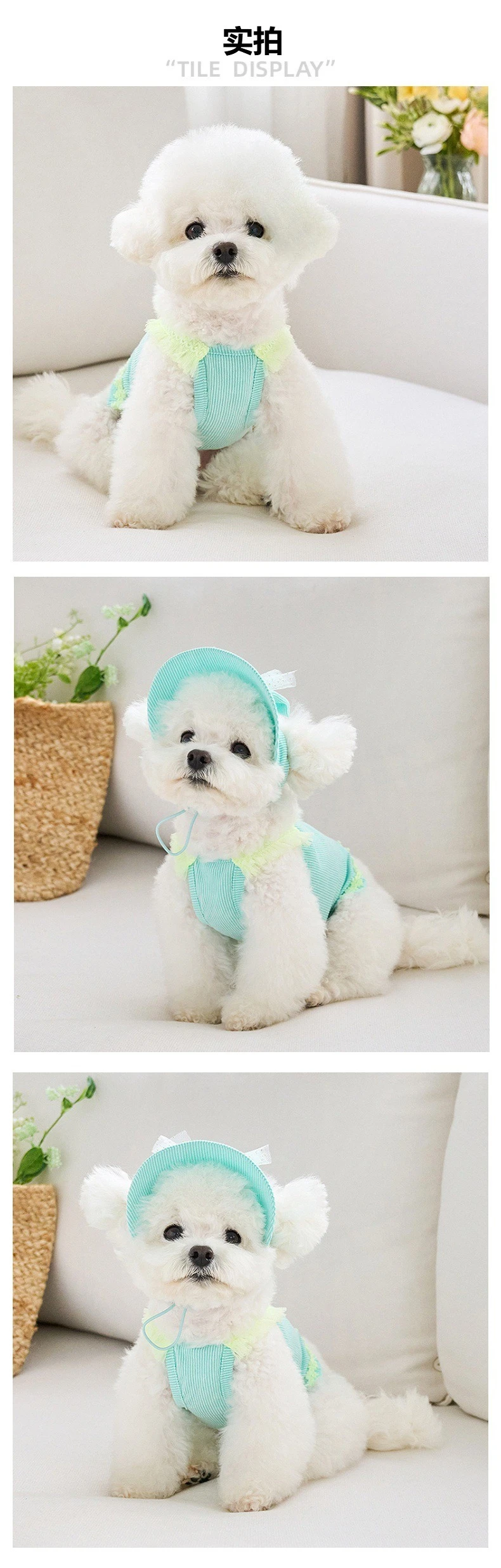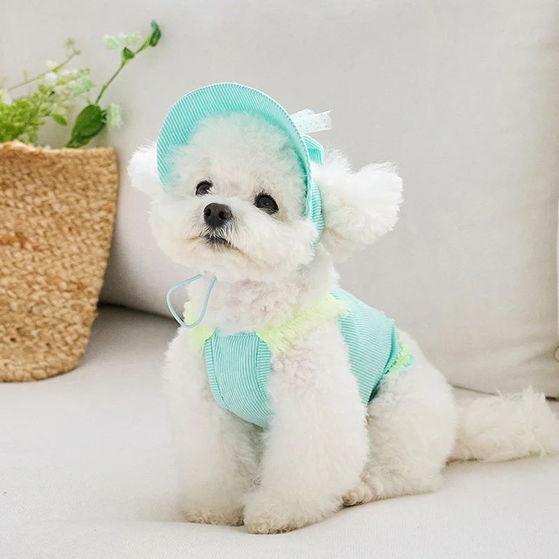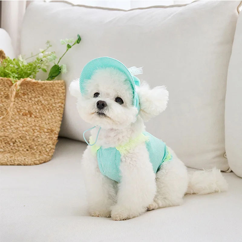 Chaleco de encaje para mascotas, Top para gatos, oso de peluche, perro pequeño y mediano, incluido sombrero para el sol, vestidos para perros pequeños, primavera y verano