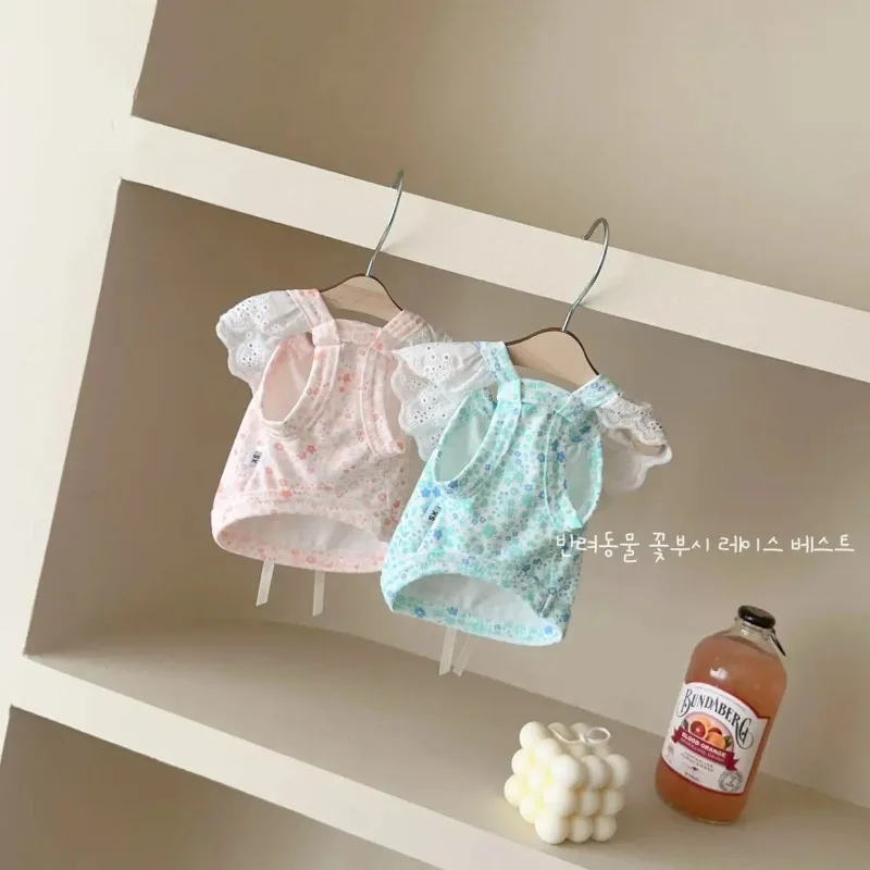 Chaleco de encaje con Top Floral de algodón para mascotas, ropa de dormir para el hogar, ropa para perros pequeños y gatos, chaleco refrescante para cachorros, camiseta para perros