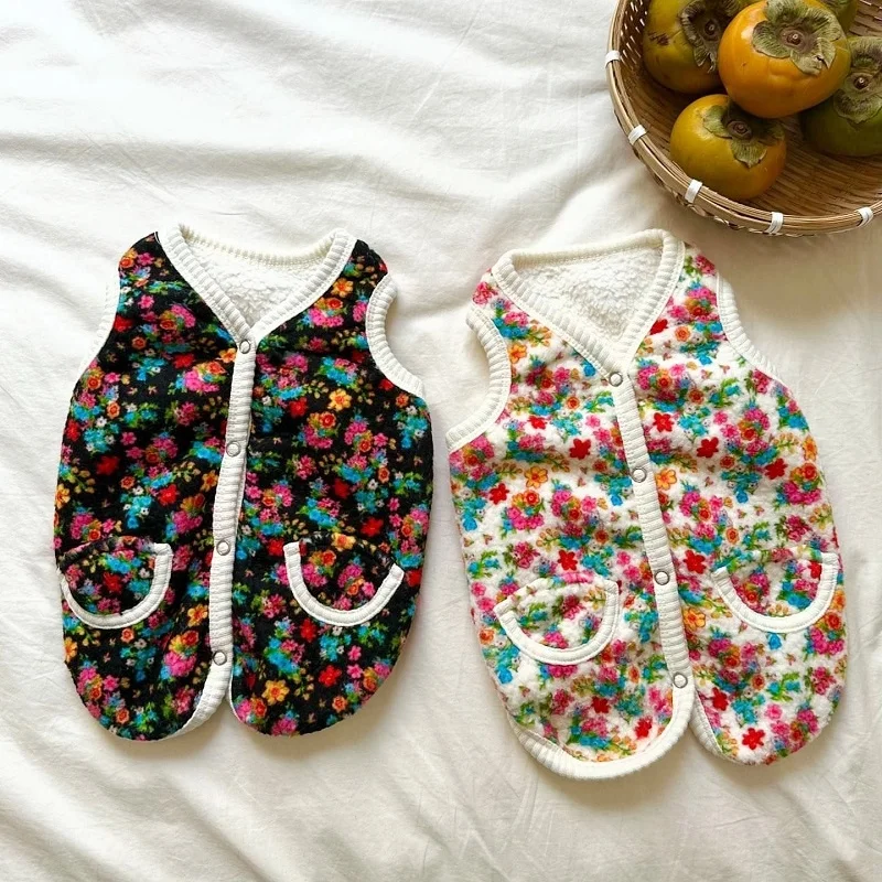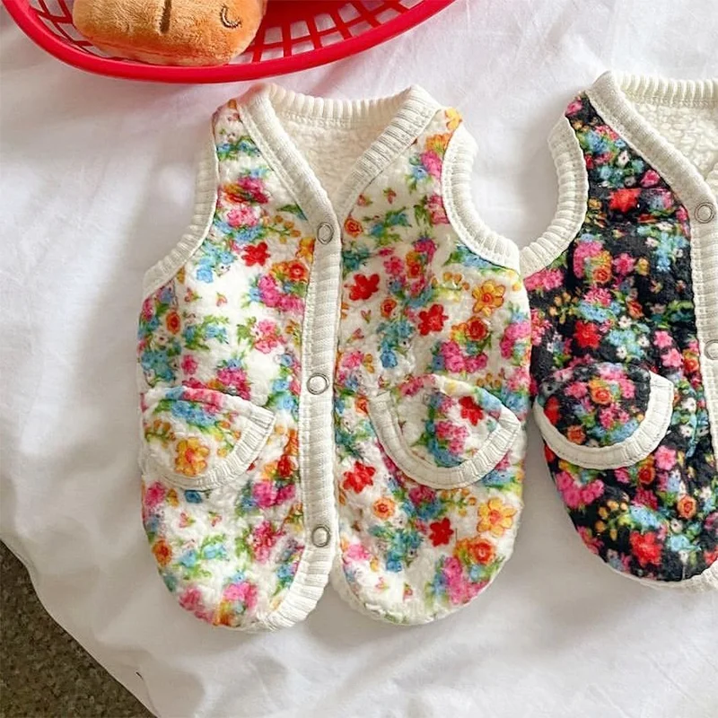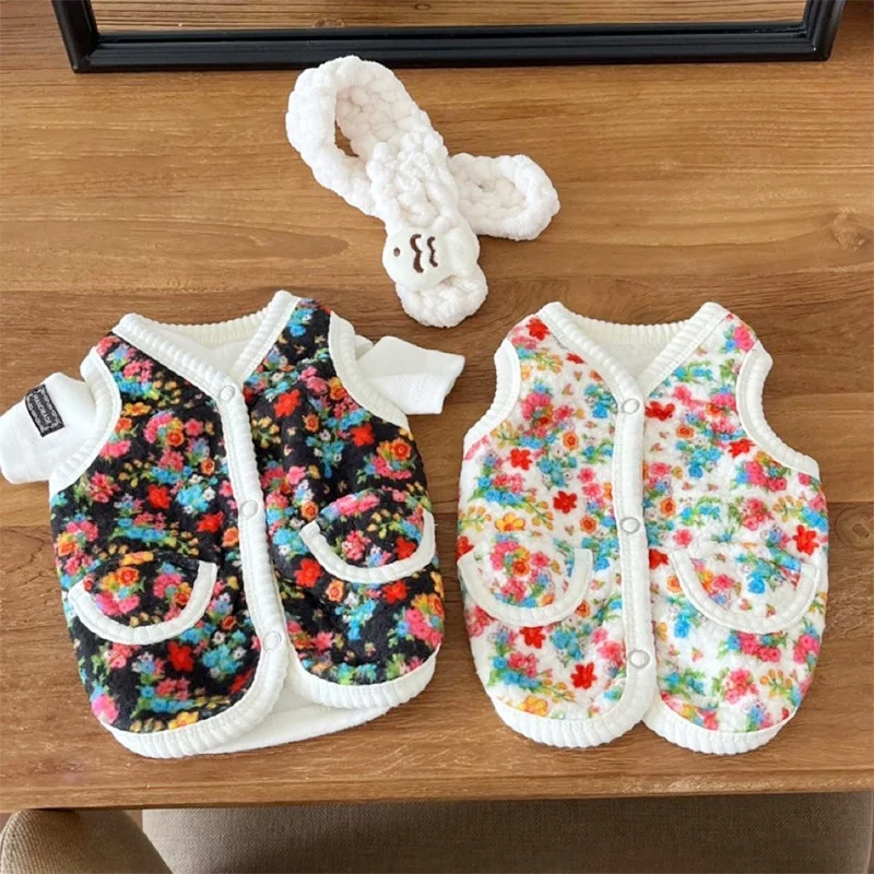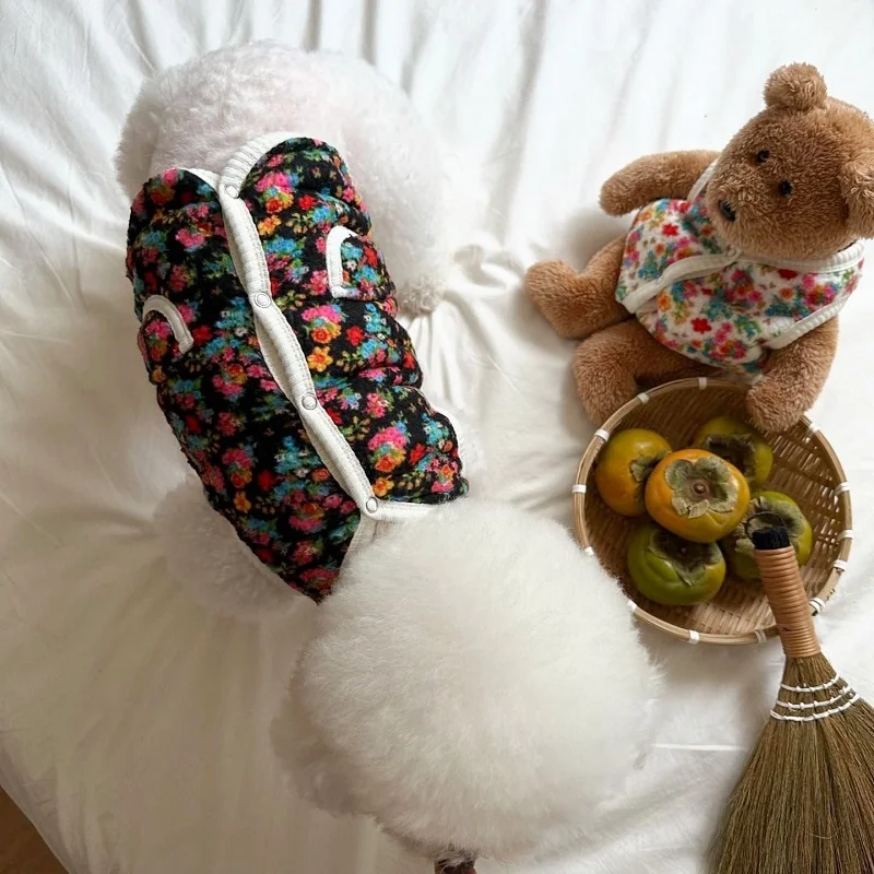 Chaleco con estampado Floral para perro, abrigo, ropa cálida y gruesa para perro, chaqueta de moda para cachorro, chaqueta de gato de otoño, abrigo, disfraz para mascota, trajes de Chihuahua