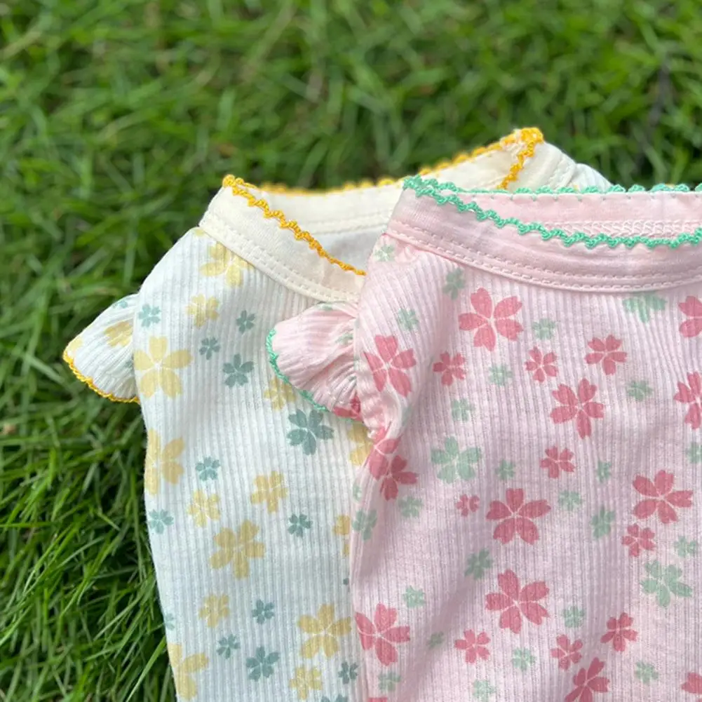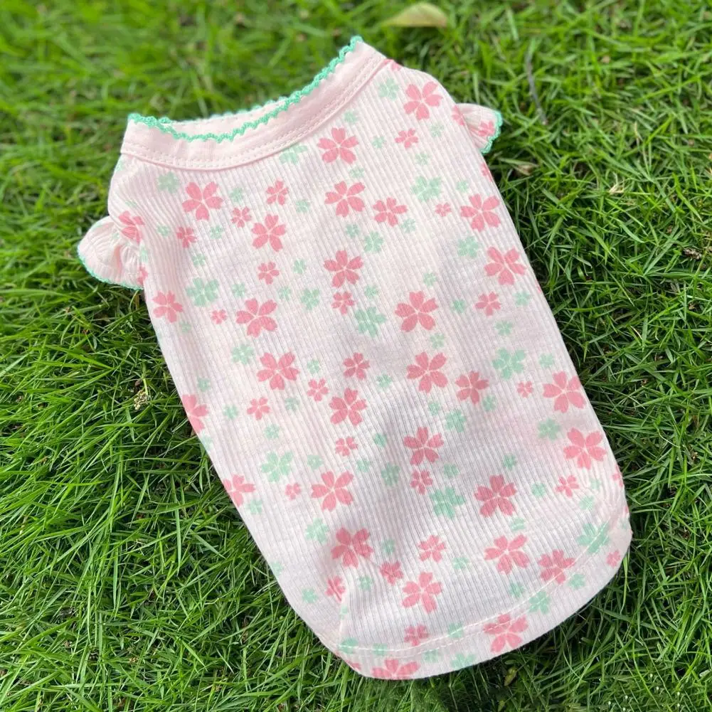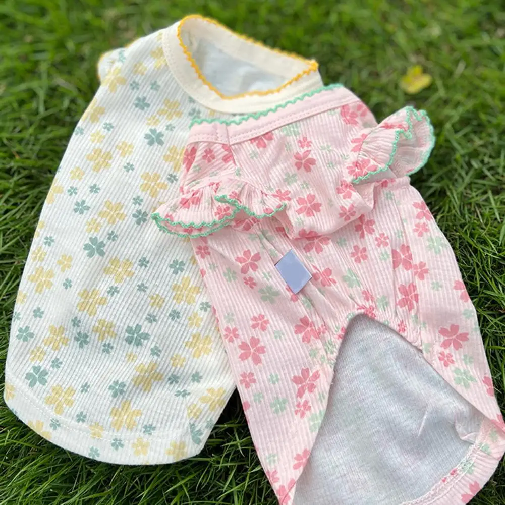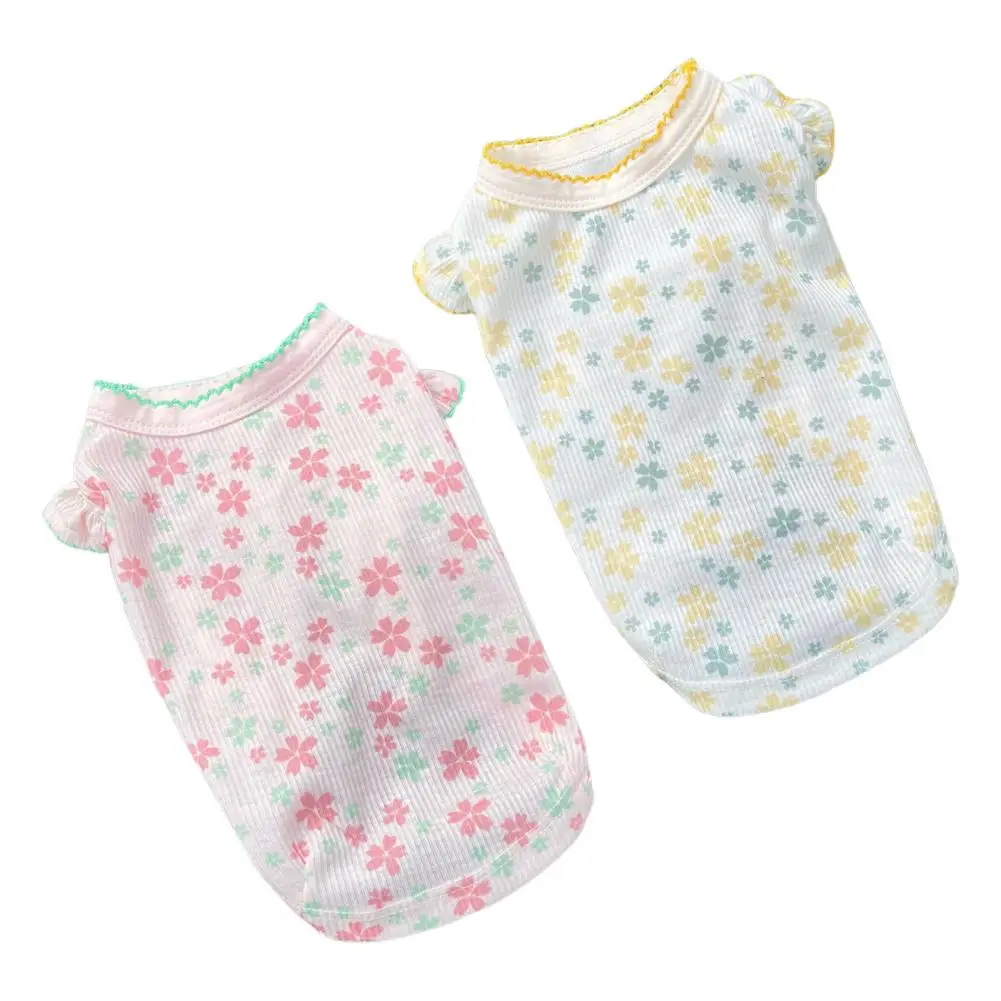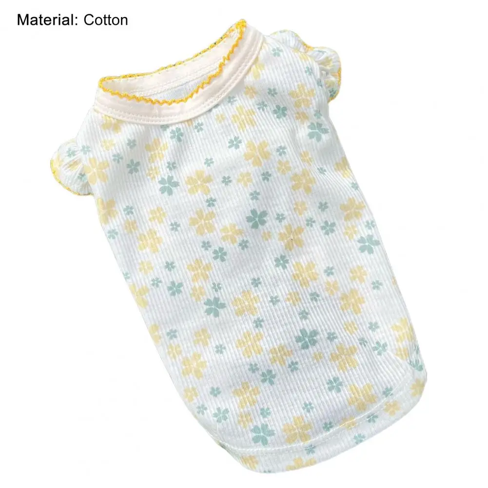 Chaleco para mascotas Mangas voladoras Estampado floral Dobladillo delicado Disfraz de perro de verano Camisa con patrón de frutas para el hogar